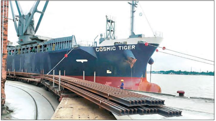 Long rail segments were imported from Japan to Yangon Port, and 4th shipment arrived on August 13th. Each shipment contains about 3000 tons of rails. About 21 shipments are expected to receive. The first shipment came in May 2019.