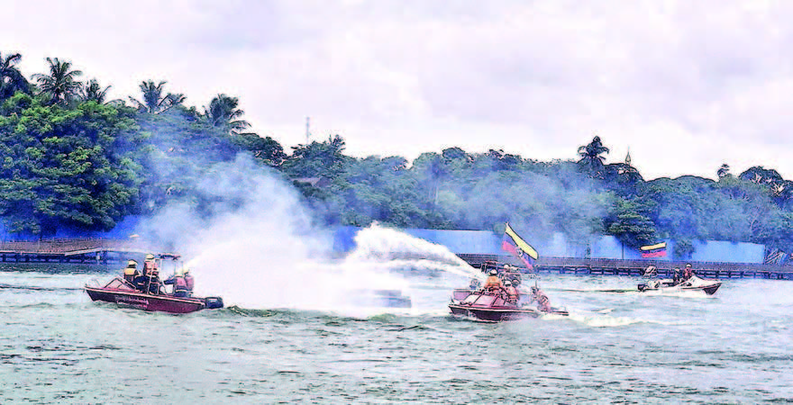 THE Yangon Region Fire Services Department yesterday morning held a water-surface firefighting and search-and-rescue demonstration at Kandawgyi Natural Lake, organized under the supervision of the Yangon Region Fire Services Department.