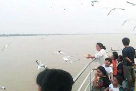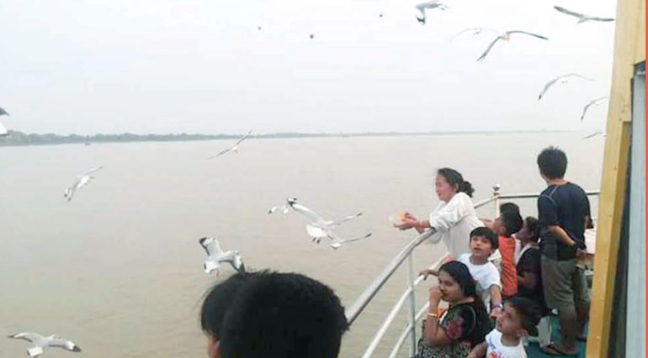 The water bus leaves Botahtaung Jetty at 9 am. Seeing Yangon from the river is a pleasure. Shortly after the ship leaves the jetty, the scenes of small motorized boats providing ferry services across the river and catching fish in the river, as vessels come into view, refreshes Sunday vacationers who have to live with traffic congestion, air pollution and busy traffic on their roads.