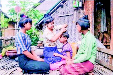 YEPOKEGYI Village in Pwintbyu Township, Magway Region, has become famous for its children who preserve the traditional ‘Sanyitwine’ hairstyle (a top knot and a circular fringe). Travellers across the country visit there to observe their culture in the non-rainy season.