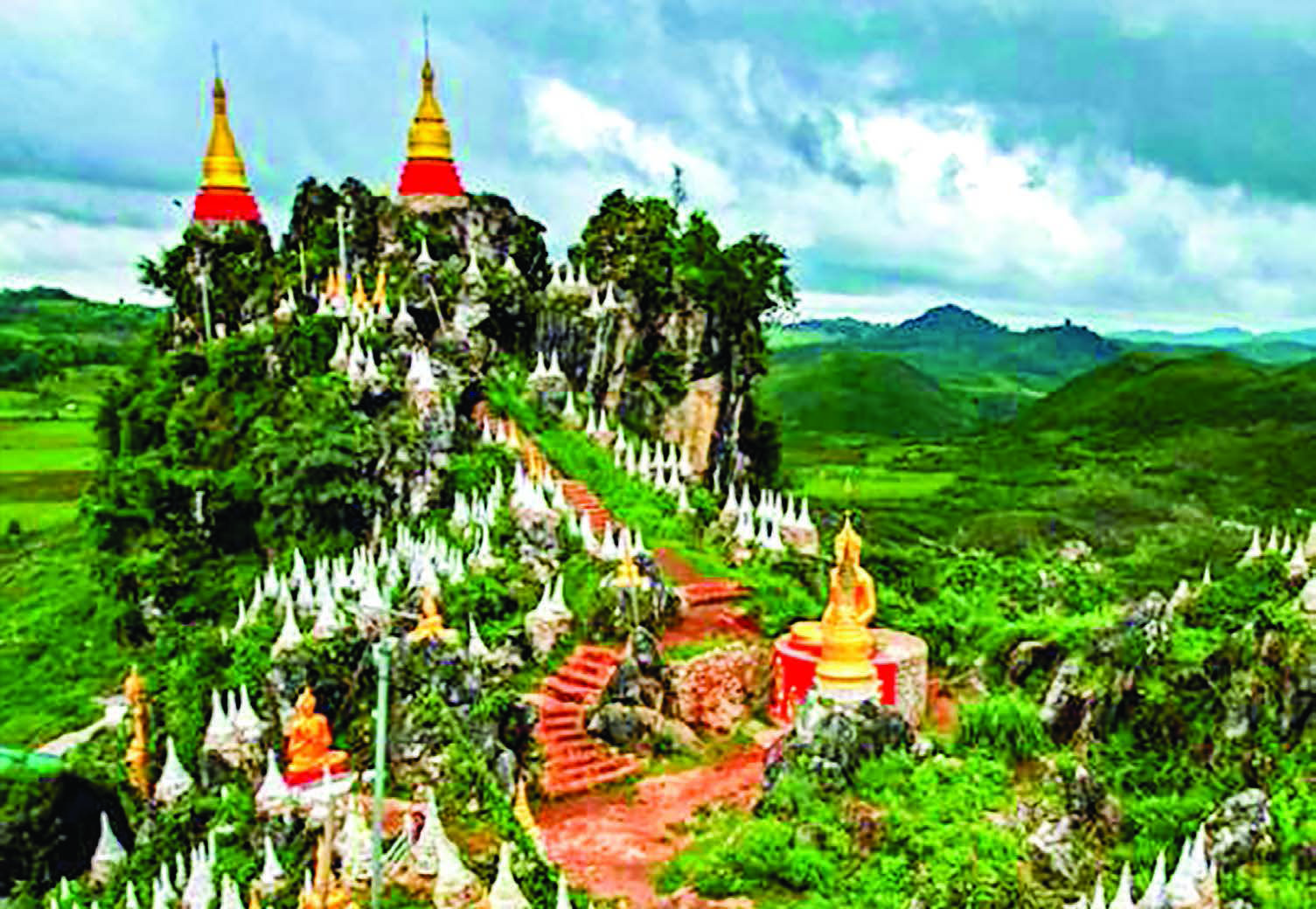 The highest peak in Shan State, 7,752 ft. high Ashay Myin Anauk Myin Mountain is also in Ywangan. Taunggyi town can be seen looking toward the east from the summit. Looking west, Meiktila town can be seen too. South of the mountain lies 7,307 ft. high Moelonehein Mountain and to the north lies 7,203 ft. high Pansitpway Mountain. The Ashay Myin Anauk Myin Mountain is home to rare flowers as well as birds and animal species. The summit of the mountain can be reached either from Ywangan side or Pindaya side. The mountain was located about 6 miles southwest of Alechaung Village.