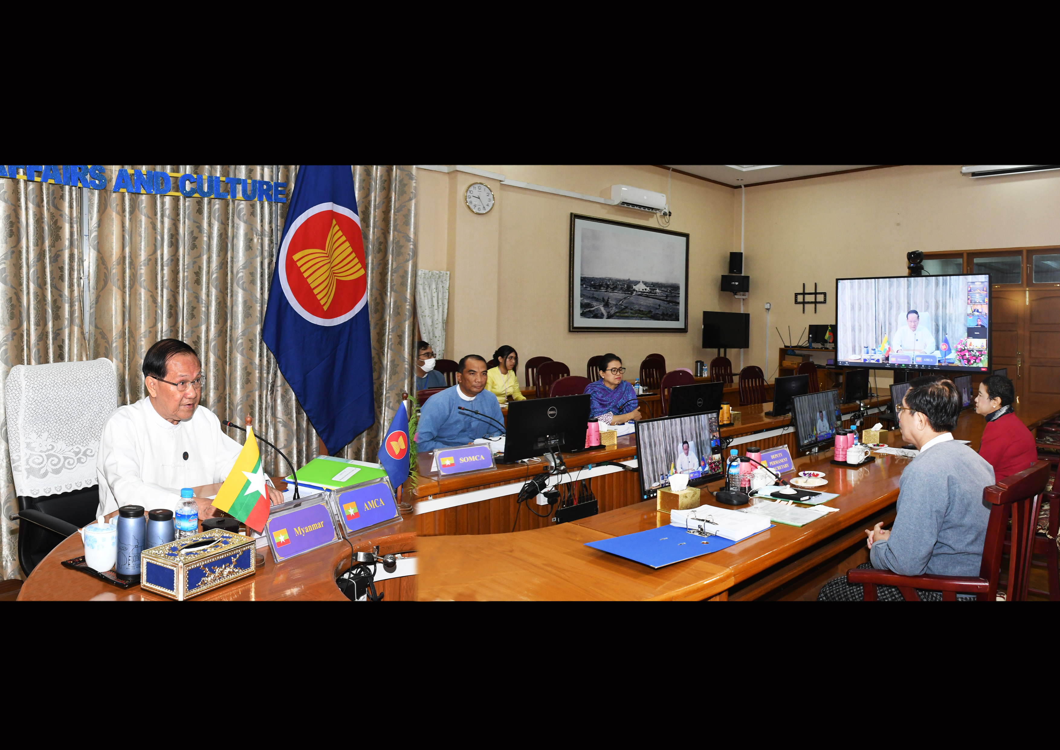 ထို့ပြင် (၁၈) ကြိမ်မြောက် အာဆီယံ ယဉ်ကျေးမှုနှင့်အနုပညာဆိုင်ရာ အဆင့်မြင့် အရာရှိကြီးများ အစည်းအဝေးနှင့်ဆက်စပ်အစည်းအဝေးများကို အောက်တိုဘာ ၂၅ ရက်က ဗီဒီယိုကွန်ဖရင့် စနစ်ဖြင့်ကျင်းပခဲ့ရာ မြန်မာနိုင်ငံ အာဆီယံ ယဉ်ကျေးမှုနှင့် အနုပညာဆိုင်ရာ အဆင့်မြင့်အရာရှိကြီး(SOMCA Leader) သမိုင်းသုတေသနနှင့် အမျိုးသားစာကြည့်တိုက်ဦးစီးဌာန၊ ညွှန်ကြားရေးမှူးချုပ် ဦးအောင်မြင့်နှင့် ကိုယ်စားလှယ်အဖွဲ့တို့ တက်ရောက်ခဲ့ကြကြောင်း သိရသည်။
