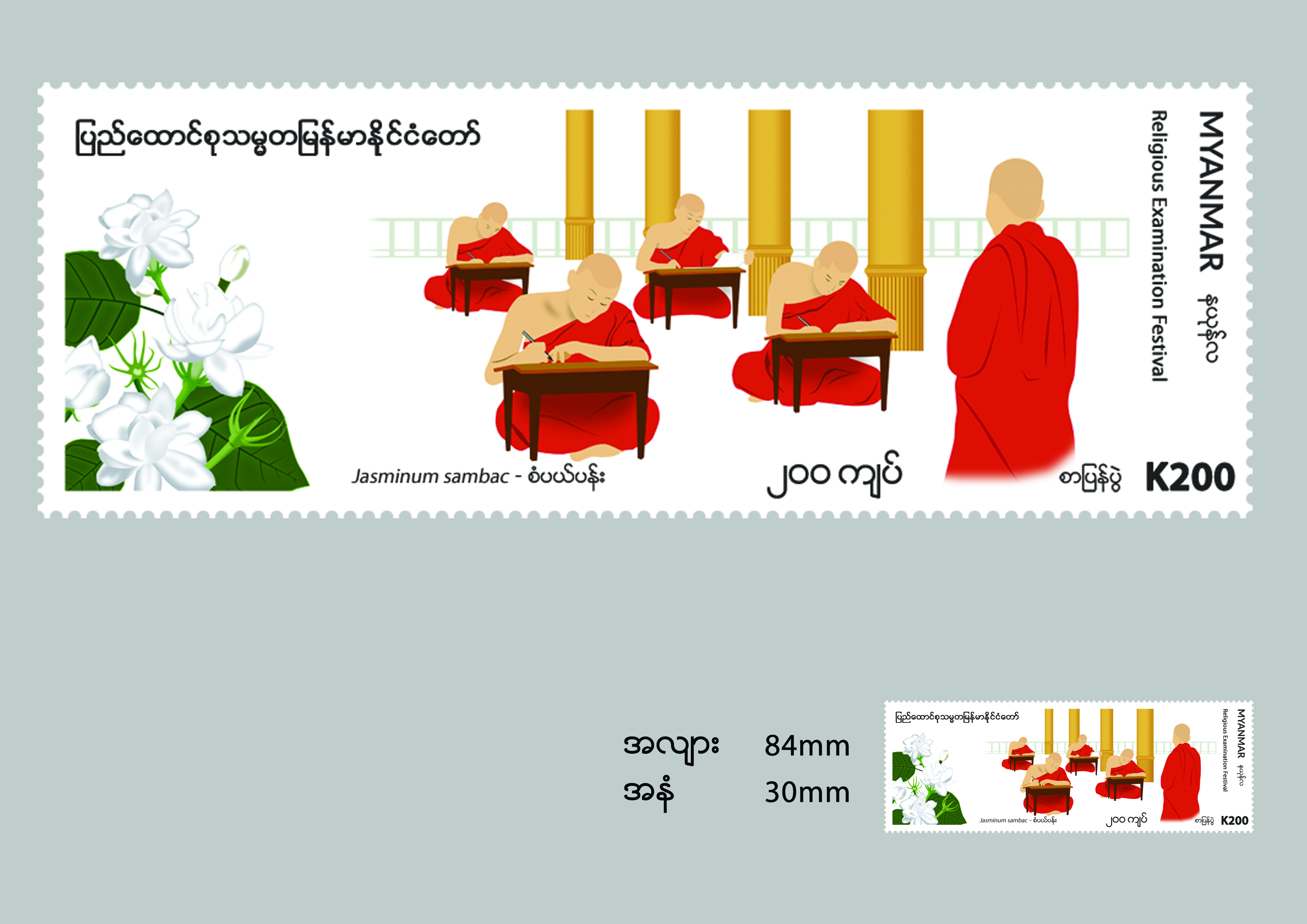 ပို့ဆောင်ရေးနှင့်ဆက်သွယ်ရေးဝန်ကြီးဌာန၊ မြန်မာ့စာတိုက် လုပ်ငန်းမှ (၁၂)လရာသီ ပွဲတော်များနှင့် ပန်းများအထိမ်းအမှတ် နယုန်လအတွက် စာပြန်ပွဲနှင့်စံပယ်ပန်း ၂ဝဝိ/-ကျပ်တန် အထူးထုတ်စာပို့ တံဆိပ်ခေါင်းသစ်(၁)မျိုးအား ဇွန် (၃)ရက်၊ မြန်မာသက္ကရာဇ် ၁၃၈၁ ခုနှစ်၊ နယုန်လဆန်း (၁)ရက်၊ တနင်္လာနေ့ နံနက် ၉ နာရီခွဲမှ စတင်၍ တိုင်းဒေသကြီး / ပြည်နယ်များရှိ လုပ်ငန်းပြည့်စာတိုက်အသီးသီး တွင် ရောင်းချပေးသွားမည်ဖြစ်သည်။