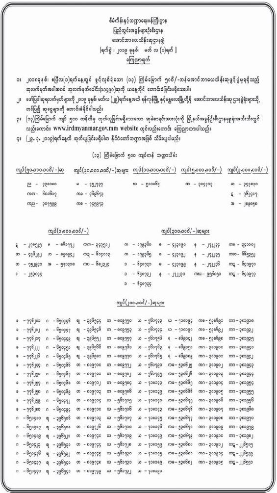 ၁၃ ကြိမ်မြောက် ၅၀ဝ/- တန် အောင်ဘာလေသိန်းဆုဖွင့်ပွဲမှ ရရှိသည့် ဆုလက်မှတ်အပါအဝင် ဆုလက်မှတ်ပေါင်း (၁၁၄၉၀) ဆုကို ယနေ့တိုင် တောင်းခံခြင်းမရှိ