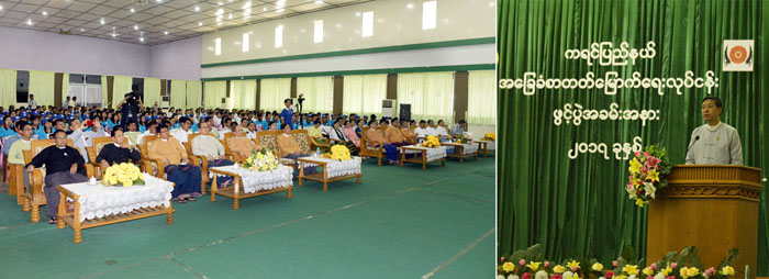 ထို့နောက် ပညာရေးဝန်ကြီးဌာန ကျောင်းပြင်ပနှင့်တစ်သက်တာ ပညာရေးဦးစီးဌာန ညွှန်ကြားရေးမှူးချုပ် ဒေါက်တာခိုင်မြဲက အခြေခံစာတတ်မြောက်ရေးလုပ်ငန်းနှင့် စပ်လျဉ်း၍ ရှင်းလင်းပြောကြားပြီး၊ ကရင်ပြည်နယ် အခြေခံစာတတ်မြောက်ရေးလုပ်ငန်း စာသင်ဝိုင်းများတွင် လုပ်အားပေးနည်းပြအဖြစ် ဆောင်ရွက်ကြမည့် ကျောင်းသား၊ ကျောင်းသူများကိုယ်စား ကိုယ်စားလှယ်တစ်ဦးက သင်ကြားရေးတာဝန် ပေးအပ်မှုအပေါ် ဝမ်းမြောက်ဂုဏ်ယူစကား ပြောကြားသည်။
