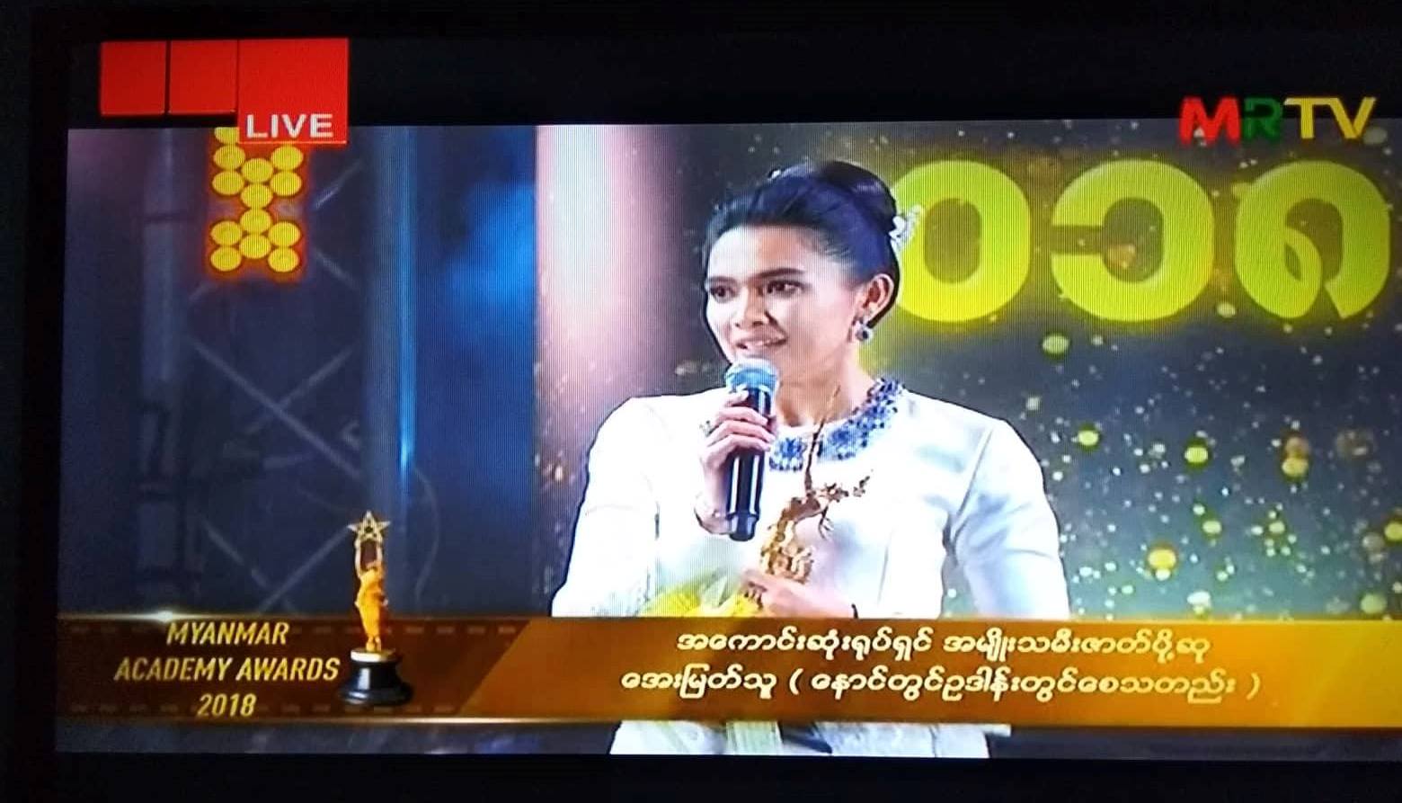 ၂၀၁၈ ခုနှစ်အတွက် မြန်မာ့ရုပ်ရှင်ထူးချွန်ဆု အကောင်းဆုံးအမျိုးသမီးရုပ်ရှင်ဇာတ်ပို့ဆုကို အေးမြတ်သူ (နောင်တွင်ဥဒါန်းတွင်စေသတည်း) ရရှိ