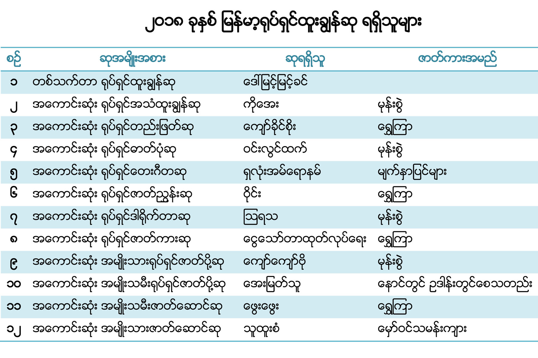၂၀၁၈ ခုနှစ်အတွက် မြန်မာ့ရုပ်ရှင်ထူးချွန်ဆု သူထူးစံနှင့် ဖွေးဖွေးတို့ အကောင်းဆုံးဇာတ်ဆောင်ဆုရရှိ