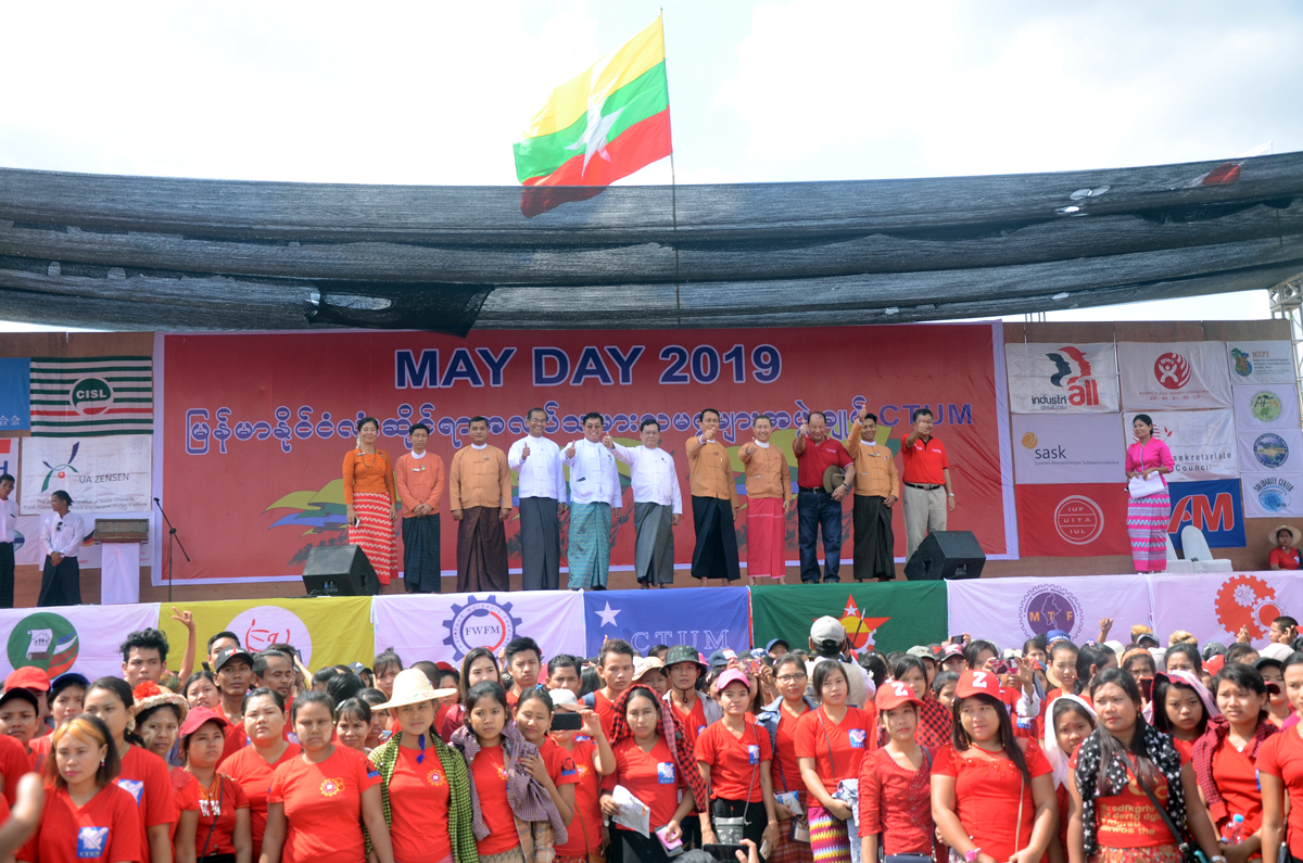 ၂၀၁၉ ခုနှစ် အပြည်ပြည်ဆိုင်ရာ အလုပ်သမားနေ့ (2019 May Day) အခမ်းအနားကို ယနေ့နံနက်ပိုင်း က ရန်ကုန်တိုင်းဒေသကြီး ၊ လှိုင်သာယာမြို့နယ် ၊ အောင်မြေသာယာဘောလုံးကွင်း၌ စည်ကားသိုက်မြိုက်စွာကျင်းပသည်။