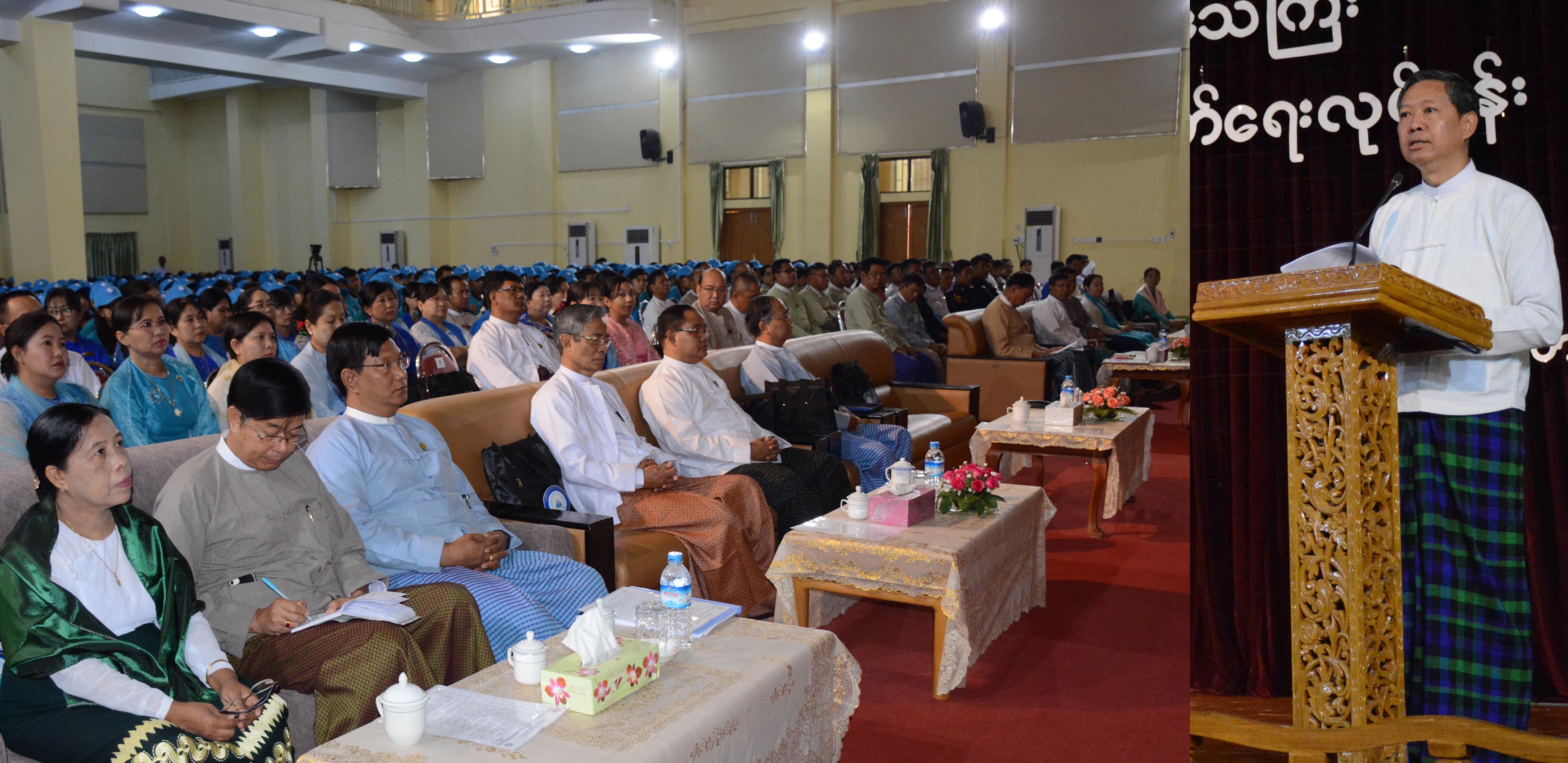ယင်းနောက်ကျောင်းပြင်ပနှင့် တစ်သက်တာပညာရေးဦးစီးဌာန ညွှန်ကြားရေးမှူးချုပ် ဒေါက်တာဇော်ဝင်းက အခြေခံစာတတ်မြောက်ရေး လုပ်ငန်းနှင့်စပ်လျဉ်း၍ ရှင်းလင်းတင်ပြသည်။