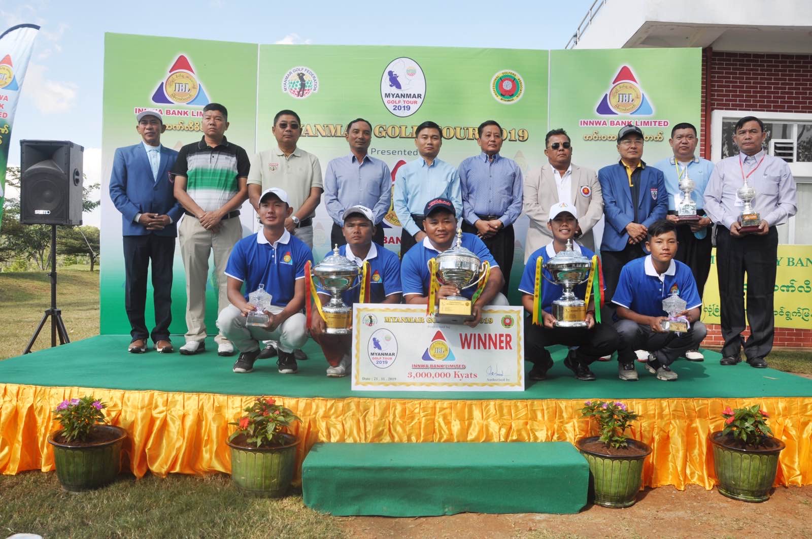 ဆက်လက်၍ ပညာရှင်အဆင့်ပြိုင်ပွဲတွင် သတ်မှတ်ရိုက်ချက်ထက် ခြောက်ချက်လျော့ရိုက်ကာ စုစုပေါင်းရိုက်ချက် (၂၈၂)ချက်ဖြင့်ပထမရရှိခဲ့သော ဘိုဘို (HAN Golf Academy)အား အလယ်ပိုင်းတိုင်းစစ်ဌာနချုပ်၊ တိုင်းမှူး ဗိုလ်ချုပ်ကျော်စွာလင်းက ဂုဏ်ပြုဆုဖလား၊ အင်းဝဘဏ်လီမီတက်အုပ်ချုပ်မှုဒါရိုက်တာ ဦးအောင်ငွေဦးက ဆုကြေး ငွေချက်လက်မှတ်ကို တို့ကိုပေးအပ်ချီးမြင့်ပြီး ဆုရကစားသမားများနှင့် တာဝန်ရှိသူများ အမှတ်တရ စုပေါင်းဓါတ်ပုံရိုက်ကူးကြသည်။