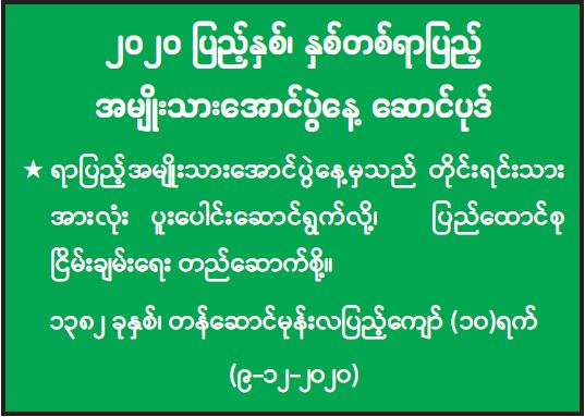 ၂၀၂၀ ပြည့်နှစ်၊ နှစ်တစ်ရာပြည့် အမျိုးသားအောင်ပွဲနေ့ ဆောင်ပုဒ်