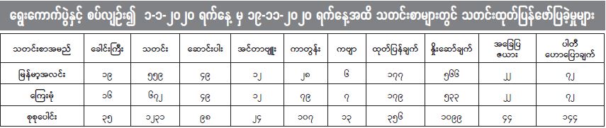 နိုင်ငံပိုင်သတင်းစာတွင် ရွေးကောက်ပွဲနှင့်ပတ်သက်၍ ၂၀၂၀ ပြည့်နှစ် ဇန်နုငါရီ ၁ ရက်မှ ယခု နိုဝင်ဘာ ၁၉ ရက်အထိ ဖော်ပြခဲ့မှုကို လေ့လာကြည့်ရာ မြန်မာ့အလင်း၊ ကြေးမုံ၊ The Global New Light of Myanmar ၊ Myanmar Digital News တို့တွင် ရွေးကောက်ပွဲ နှင့် သက်ဆိုင်သည့် ခေါင်ကြီး ၃၅ ပုဒ်၊ သတင်း ပုဒ်၊ ၁၃၁ ပုဒ်၊ ဆင်ပါး ၉၈ ပုဒ်၊ တွေ့ဆုံမေးမြန်း ၂၄ ပုဒ်၊ ကာတွန်း ၁၀၇ ပုဒ်၊ ကဗျာ ၁၃ ပုဒ၊် ထုတ်ပြန်ချက် ၃၅၆ ခု၊ နှိုးဆော်ချက် ၁၁၉၉ ခု၊ အခြေပြီးသား ၄၄ ခု၊ ပါတီဟာပြောချက် ၁၄၄ ပုဒ်တို့ကို ဖော်ပြပေးနိုင်ခဲ့ပါသည်။