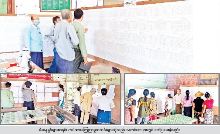 ပြည်ထောင်စုရွေးကောက်ပွဲကော်မရှင် နှင့်အတူ ဌာနဆိုင်ရာအဖွဲ့ အစည်းများ၊ စေတနာ့ဝန်ထမ်းများအားလုံးက စုပေါင်း၍ မိမိတို့နိုင်ငံအတွက် ဝိုင်းဝန်းကြိုးပမ်းဆောင်ရွက်မှုများ၏ ရလဒ်များအဖြစ် လွှတ်တော်အသီးသီးအတွက် ရွေးကောက် တင်မြှောက်ခြင်းခံရသည့် လွှတ်တော် ကိုယ်စားလှယ်များ အမည်စာရင်းသည် လည်း အတည်ပြု ထွက်ပေါ်လာခဲ့ပြီဖြစ်ပါ သည်။