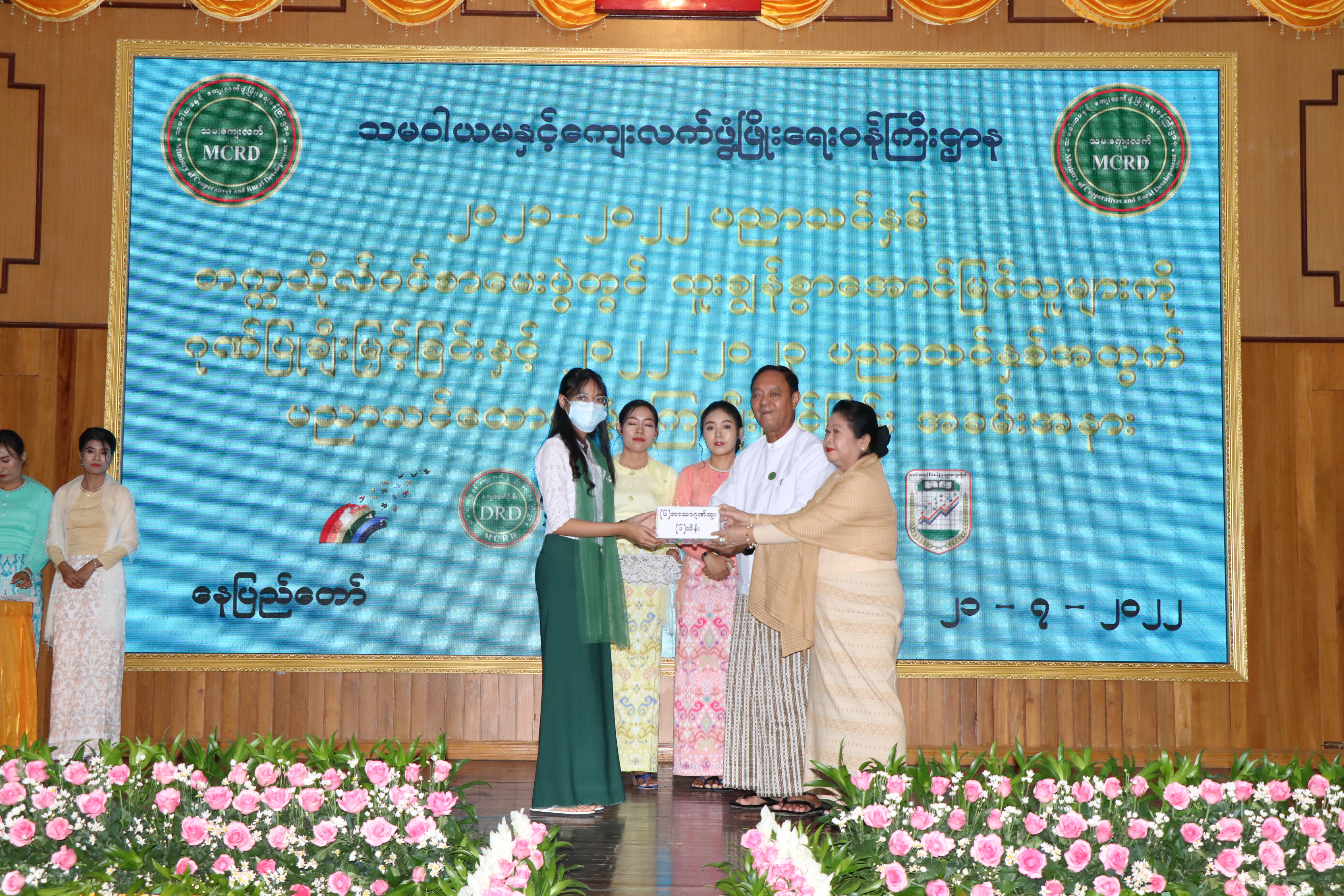 ၂၀၂၁-၂၀၂၂ ပညာသင်နှစ် တက္ကသိုလ်ဝင်စာမေးပွဲတွင် ဂုဏ်ထူးများဖြင့် ထူးချွန်စွာအောင်မြင် ခဲ့ကြသော သမဝါယမနှင့် ကျေးလက်ဖွံ့ဖြိုးရေးဝန်ကြီးဌာနရှိ ဝန်ထမ်း သား၊ သမီးများအား ဂုဏ်ပြု ချီးမြှင့်ခြင်းနှင့် ၂၀၂၂-၂၀၂၃ ပညာသင်နှစ်အတွက် ပညာသင်ထောက်ပံ့ကြေးများ ချီးမြှင့်ပေးအပ် ခြင်းအခမ်းအနားကို ယနေ့နံနက်ပိုင်းက အဆိုပါဝန်ကြီးဌာနရှိ အစည်းအဝေးခန်းမ၌ ကျင်းပသည်။