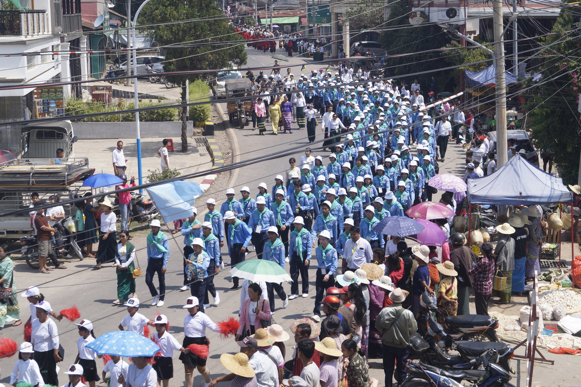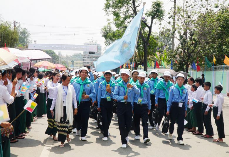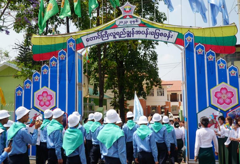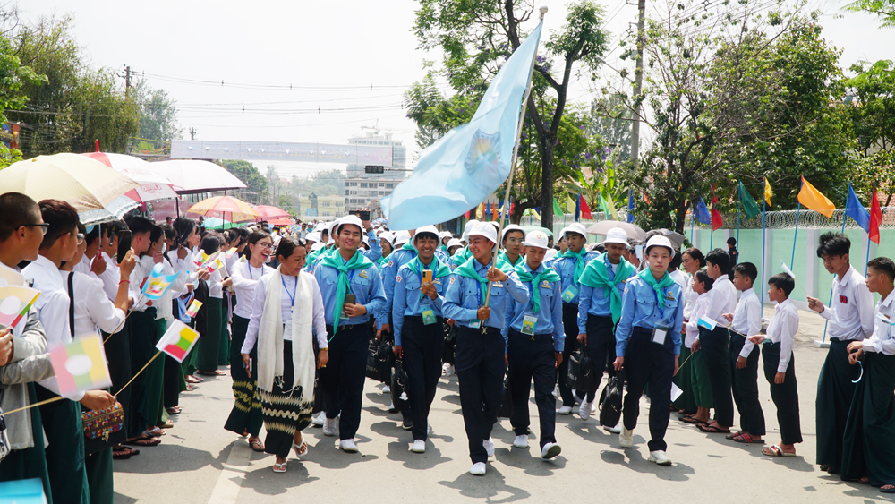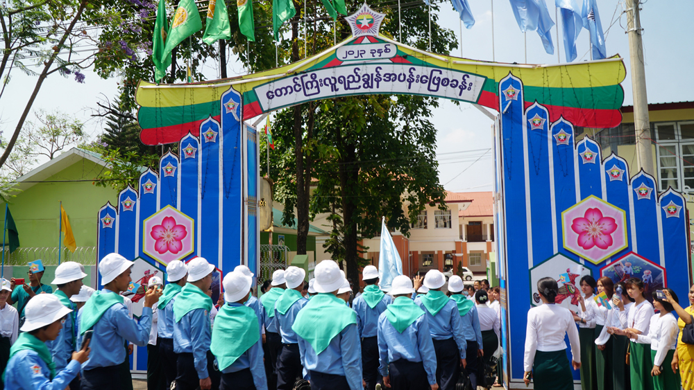ထို့နောက် ဆက်လက်ထွက်ခွာပြီး မွန်းလွဲ ၂ နာရီတွင် လူရည်ချွန်စခန်းဖွင့်လှစ်ထားသည့် တောင်ကြီးမြို့ အမှတ်(၁) အခြေခံပညာအထက်တန်းကျောင်းသို့ ရောက်ရှိကြရာ ဆရာ ဆရာမ၊ ကျောင်းသား ကျောင်းသူများက လှိုက်လှိုက်လှဲလှဲ ကြိုဆိုခဲ့ကြကြောင်း သိရသည်။