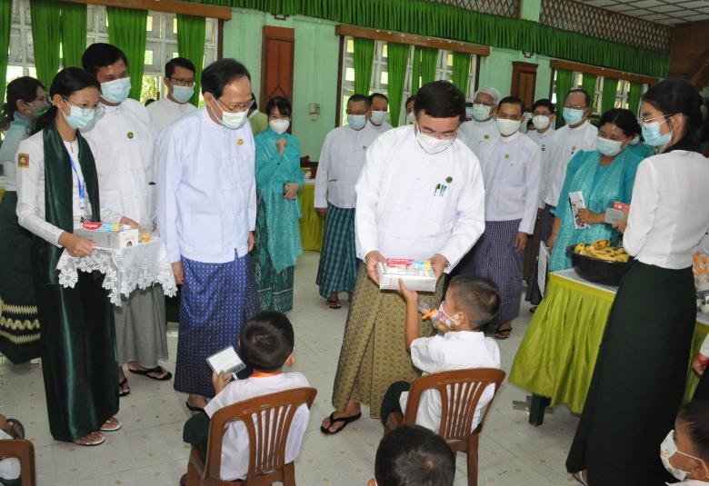 ထို့နောက် ကြွရောက်လာသည့် ပြည်ထောင်စုဝန်ကြီးများ၊ တာဝန်ရှိသူများနှင့် တက်ရောက် လာသော ဧည့်သည်တော်များက ကျောင်းသား၊ ကျောင်းသူများကို သန်ချဆေးတိုက်ကျွေးခြင်း၊ ပျိုဖော်ဝင်ဆယ်ကျော်သက်ကျောင်းသူများကို သံဓာတ်အားဆေး ပေးဝေခြင်းနှင့် သူငယ်တန်း ကျောင်းသား၊ ကျောင်းသူများအား နို့၊ ကြက်ဉပြုတ်နှင့် ဌက်ပျောသီးအာဟာရများ ပေးဝေကြသည်။
