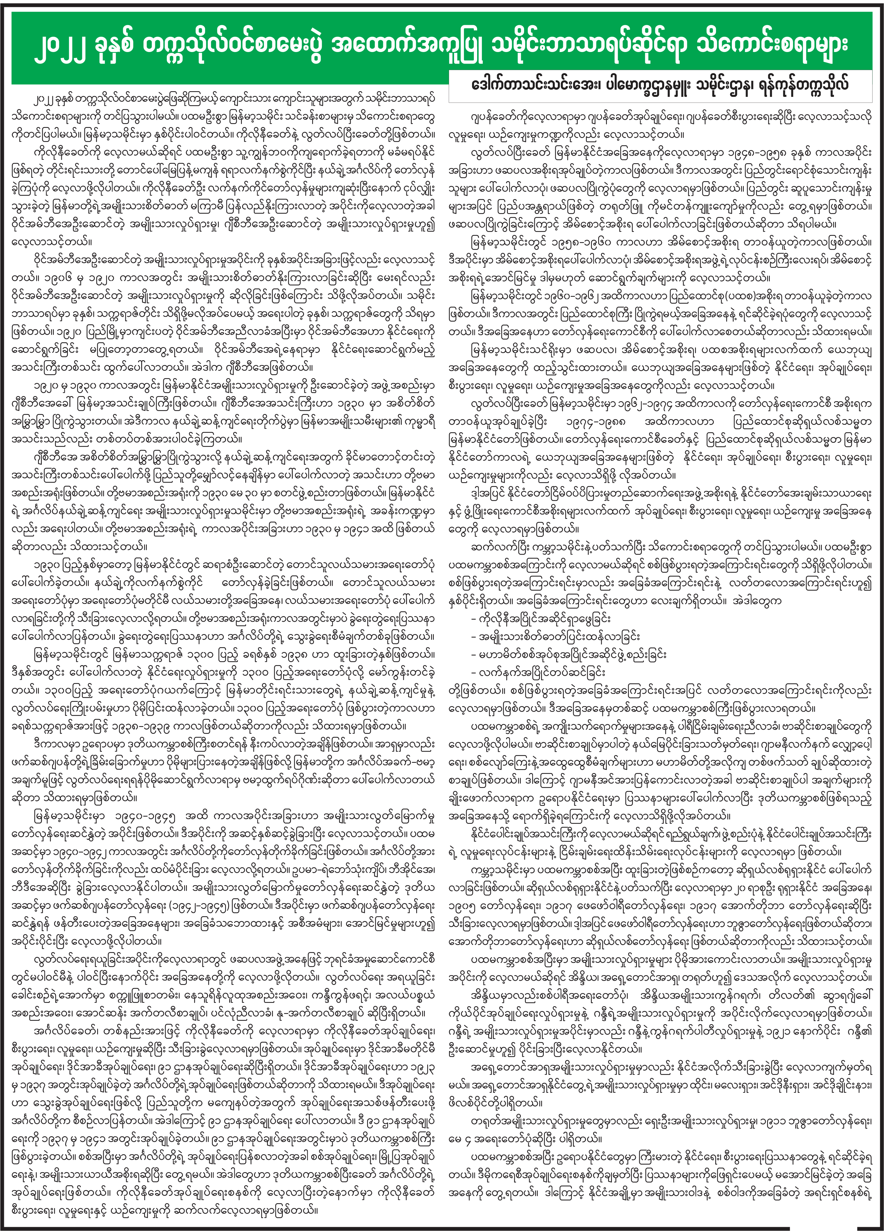၂၀၂၂ ခုနှစ် တက္ကသိုလ်ဝင်စာမေးပွဲ အထောက်အကူပြု သမိုင်းဘာသာရပ်ဆိုင်ရာ သိကောင်းစရာများ