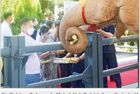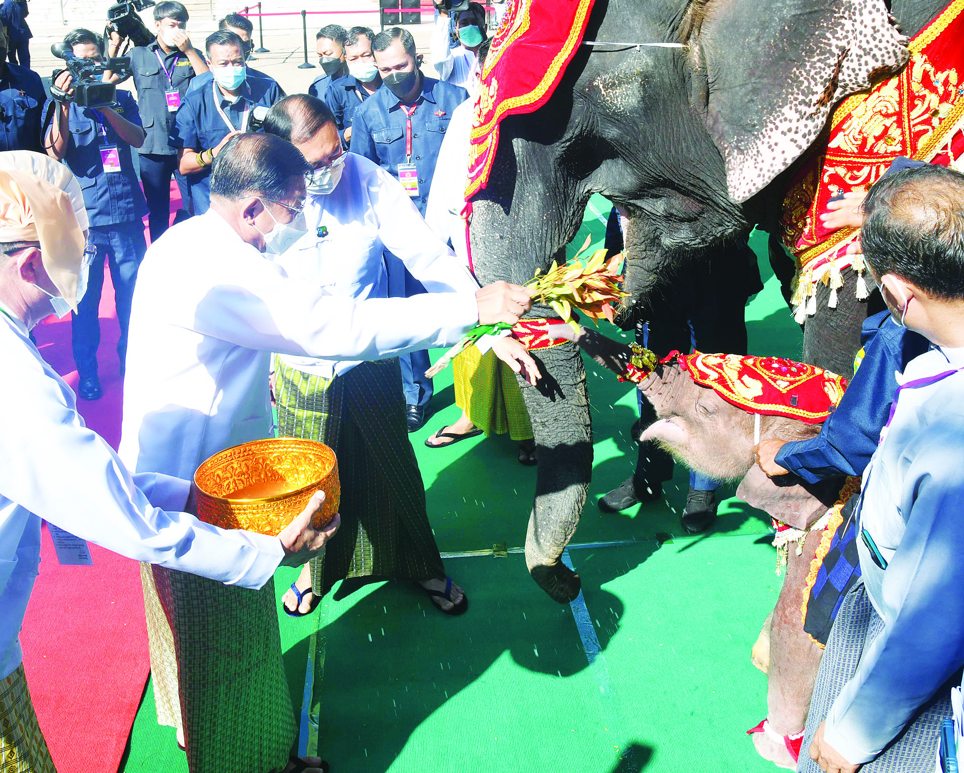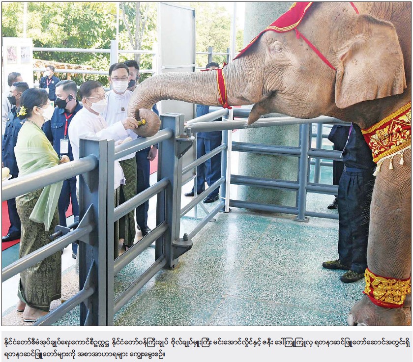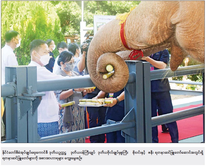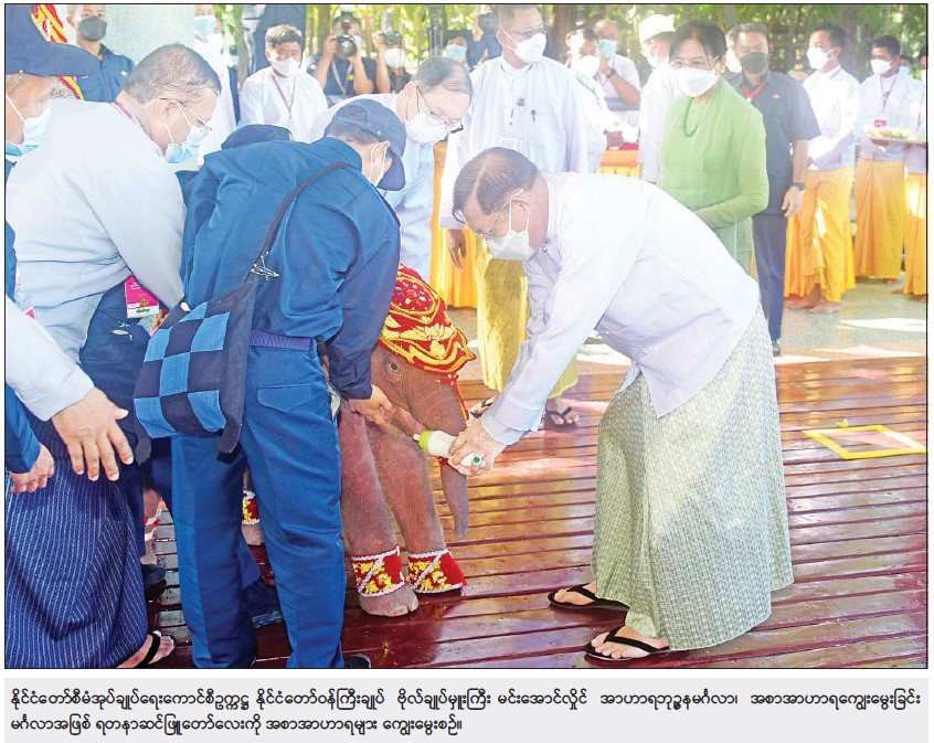 အခမ်းအနားအပြီးတွင် နိုင်ငံတော်စီမံအုပ်ချုပ်ရေးကောင်စီဥက္ကဋ္ဌ နိုင်ငံတော် ဝန်ကြီးချုပ်နှင့်ဇနီး၊ ကောင်စီဒုတိယဥက္ကဋ္ဌ ဒုတိယဝန်ကြီးချုပ်နှင့်ဇနီးနှင့် အခမ်းအနားတက် ရောက်လာကြသူများသည် “ ရဋ္ဌ နန္ဒက ” (တိုင်းပြည်က ချစ်ခင်မြတ်နိုး၍ နိုင်ငံတော်၏ သာယာဝပြောပျော်ရွှင်ခြင်းကို ဆောင်ကြဉ်းပေးမည့် ဆင်ဖြူရတနာ) ရတနာဆင်ဖြူတော်လေးနှင့် ရတနာဆင်ဖြူတော်ဆောင်အတွင် ရှိ ရတနာဆင်ဖြူတော်များနှင့် ရတနာဆင်ဖြူတော် အဖော်ဆင်များကို အစာ အာဟာရများ ကျွေးမွေးခဲ့ကြသည်။