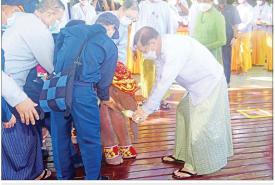 အခမ်းအနားသို့ နိုင်ငံတော်စီမံအုပ်ချုပ်ရေးကောင်စီဥက္ကဋ္ဌ နိုင်ငံတော်ဝန်ကြီးချုပ် ဗိုလ်ချုပ်မှူးကြီး မင်းအောင်လှိုင်နှင့်ဇနီး ဒေါ်ကြူကြူလှ၊ ကောင်စီဒုတိယဥက္ကဋ္ဌ ဒုတိယဝန်ကြီးချုပ် ဒုတိယဗိုလ်ချုပ်မှူးကြီး စိုးဝင်းနှင့် ဇနီးဒေါ်သန်းသန်းနွယ်၊ ကောင်စီဝင်များနှင့်ဇနီးများ၊ ကောင်စီအတွင်းရေးမှူးနှင့်ဇနီး၊ တွဲဖက်အတွင်းရေးမှူး နှင့်ဇနီး၊ ပြည်ထောင်စုဝန်ကြီးများနှင့်ဇနီးများ၊ ပြည်ထောင်စု အဆင့်ပုဂ္ဂိုလ်များ၊ နေပြည်တော်ကောင်စီဥက္ကဋ္ဌ၊ တပ်မတော်အရာရှိကြီးများနှင့် ဇနီးများ၊ နေပြည်တော် တိုင်းစစ်ဌာနချုပ်တိုင်းမှူးနှင့် တာဝန်ရှိသူများ တက်ရောက်ကြသည်။