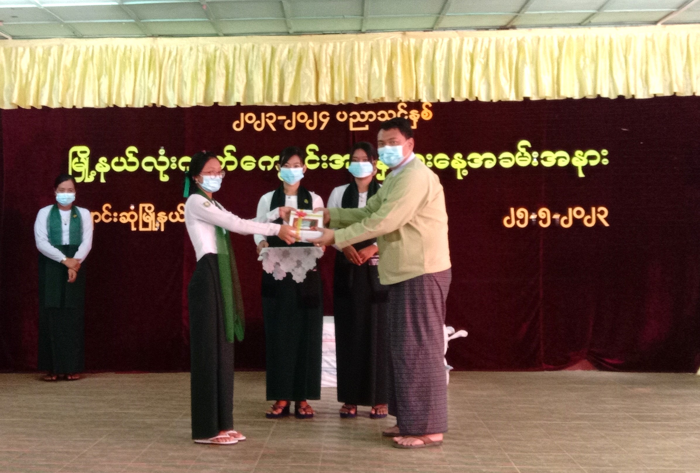 ထိုနောက် မြို့နယ်အတွင်းရှိ အခြေခံပညာ(ထက်၊လယ်မူ) ကျောင်းများအတွက် ကျောင်းသုံး ပုံနှိပ်စာအုပ်၊ ဗလာစာအုပ်၊ ခဲတံ၊ ဘောပင်နှင့် ကျောင်းဝတ်စုံများကို တာဝန်ရှိသူများက ပေးအပ်ကြပြီး ချောင်းဆုံ(အထက) ကျောင်းသား ကျောင်းသူများက ပြည်မြန်မာ တေးသီချင်းဖြင့် သီဆို၍ အခမ်းအနားကို ရုပ်သိမ်းခဲ့သည်။