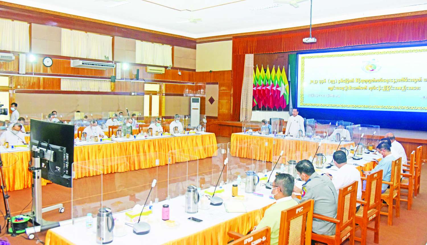ယင်းနောက် ဦးစီးကော်မတီ ဒုတိယဥက္ကဋ္ဌ (၂) နေပြည်တော်ကောင်စီဥက္ကဋ္ဌ ဦးတင်ဦးလွင်က (၇၅) နှစ်မြောက် စိန်ရတုလွတ်လပ်ရေးနေ့အထိမ်းအမှတ် ပဒေသာကပွဲကျင်းပမည့် နေပြည်တော် မြို့တော်ခန်းမရှိ လေဟာပြင် ပြဇာတ်ရုံဆိုင်ရာ အချက်အလက်များနှင့်ပတ်သက်၍ ရှင်းလင်းပြောကြားပြီး ပဒေသာကပွဲကြီးခမ်းနားထည်ဝါစွာ ကျင်းပနိုင်ရေးအတွက် ပူးပေါင်းဆောင်ရွက်သွားမည်ဖြစ်ပါကြောင်း ပြောကြားသည်။