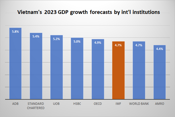 အာရှဖွံ့ဖြိုးရေးဘဏ်သည် ၂၀၂၃ ခုနှစ် ဗီယက်နမ်နိုင်ငံ၏ ပြည်တွင်းအသားတင်ထုတ်ကုန် (GDP) တိုးတက်မှုခန့်မှန်းချက်ကို ဧပြီလတွင် ယခင်ခန့်မှန်းချက် ၆.၅ ရာခိုင်နှုန်းမှ ၅.၈ ရာခိုင်နှုန်းသို့ ပြန်လည်ပြင်ဆင်ခဲ့သည်။