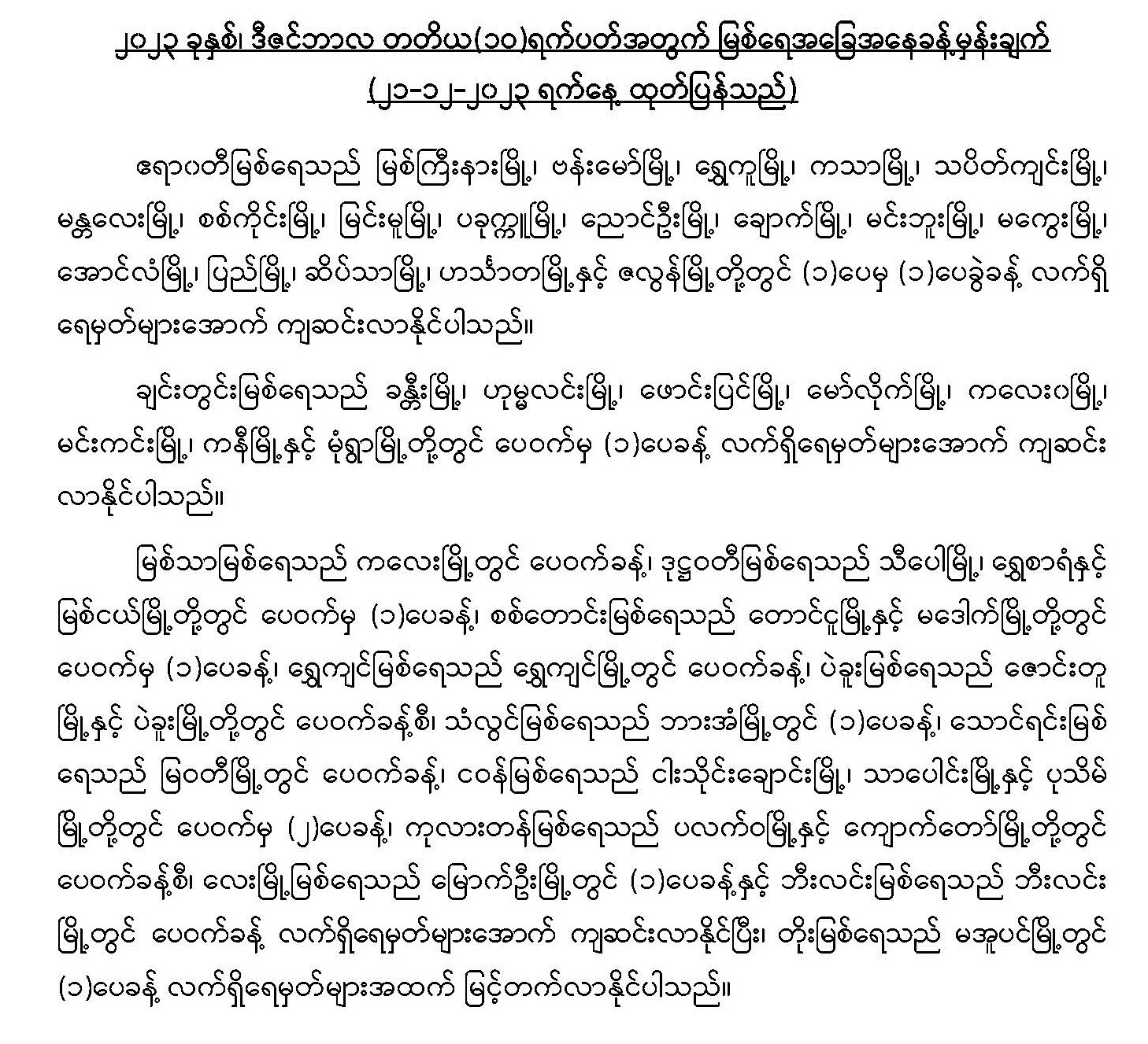 မိုးလေဝသနှင့်ဇလဗေဒညွှန်ကြားမှုဦးစီးဌာနမှ ၂၀၂၃ ခုနှစ်၊ ဒီဇင်ဘာလ တတိယ(၁၀)ရက်ပတ်အတွက် မြစ်ရေအခြေအနေ