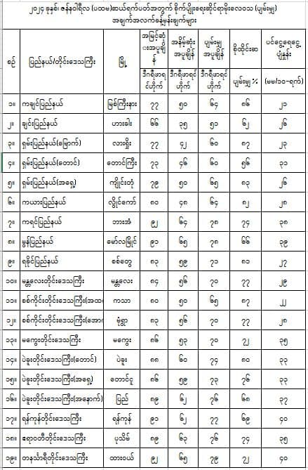၂၀၂၃ ခုနှစ်၊ ဒီဇင်ဘာလ (တတိယ)ဆယ်ရက်ပတ်အတွင်း မိုးရွာသွန်းမှုအခြေအနေများမှာ- ကချင်ပြည်နယ်တွင် ဒီဇင်ဘာလ (တတိယ)ဆယ်ရက်ပတ်၏ ပျမ်းမျှမိုးရေချိန်ထက် ပိုခဲ့ကာ၊ စစ်ကိုင်းတိုင်းဒေသကြီး၊ မန္တလေးတိုင်းဒေသကြီး၊ မကွေးတိုင်းဒေသကြီး၊ ပဲခူးတိုင်းဒေသကြီး၊ ရန်ကုန်တိုင်းဒေသကြီး၊ ဧရာဝတီတိုင်းဒေသကြီး၊ တနင်္သာရီတိုင်းဒေသကြီး၊ ချင်းပြည်နယ်၊ ရှမ်းပြည်နယ်၊ ရခိုင်ပြည်နယ်၊ ကယားပြည်နယ်၊ ကရင်ပြည်နယ်နှင့် မွန်ပြည်နယ်တို့တွင် ဒီဇင်ဘာလ (တတိယ)ဆယ်ရက်ပတ်၏ ပျမ်းမျှမိုးရေချိန်တို့အောက် လျော့နည်းခဲ့ပါသည်။