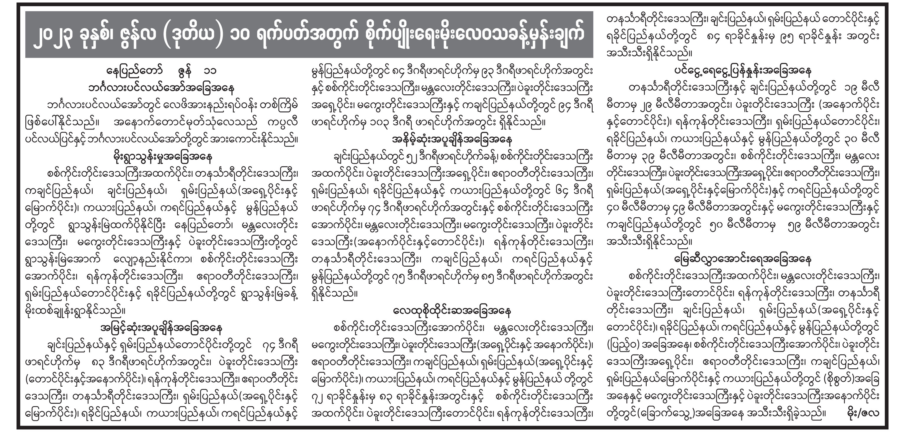 ၂၀၂၃ ခုနှစ်၊ ဇွန်လ (ဒုတိယ) ၁၀ ရက်ပတ်အတွက် စိုက်ပျိုးရေးမိုးလေဝသခန့်မှန်းချက်