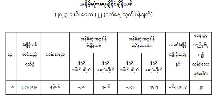 ၂၀၂၃ ခုနှစ်၊ မေလ(၂၂)ရက်နေ့တွင် မိုးလေဝသနှင့် ဇလဗေဒညွှန်ကြားမှုဦးစီးဌာနမှ ထုတ်ပြန်သည့် မေလ၏ အနိမ့်ဆုံးအပူချိန်စံချိန်သစ်