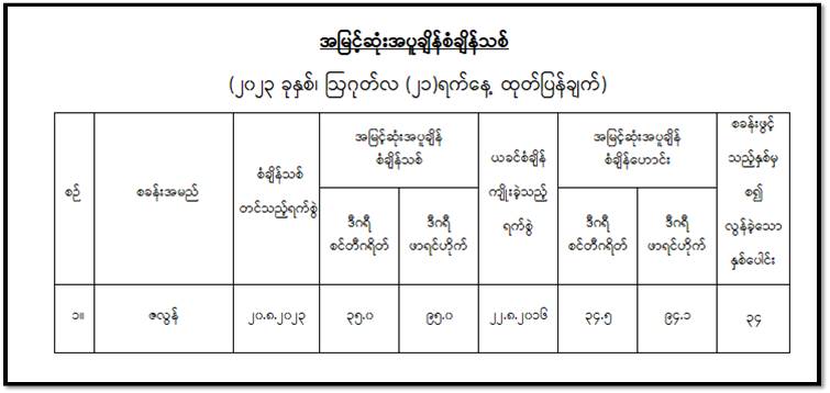 ၂၀၂၃ ခုနှစ်၊ ဩဂုတ်လ (၂၁)ရက်နေ့တွင် မိုးလေဝသနှင့် ဇလဗေဒညွှန်ကြားမှုဦးစီးဌာနမှ ထုတ်ပြန်သည့် ဩဂုတ်လ၏ အမြင့်ဆုံးအပူချိန်စံချိန်သစ်