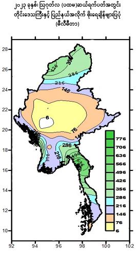 (ဖြစ်နိုင်စွမ်းပင်ငွေ့ရေငွေ့ပျံနှုန်းအား   HARGREAVES METHOD ဖြင့် တွက်ချက်ထားပါသည်။)