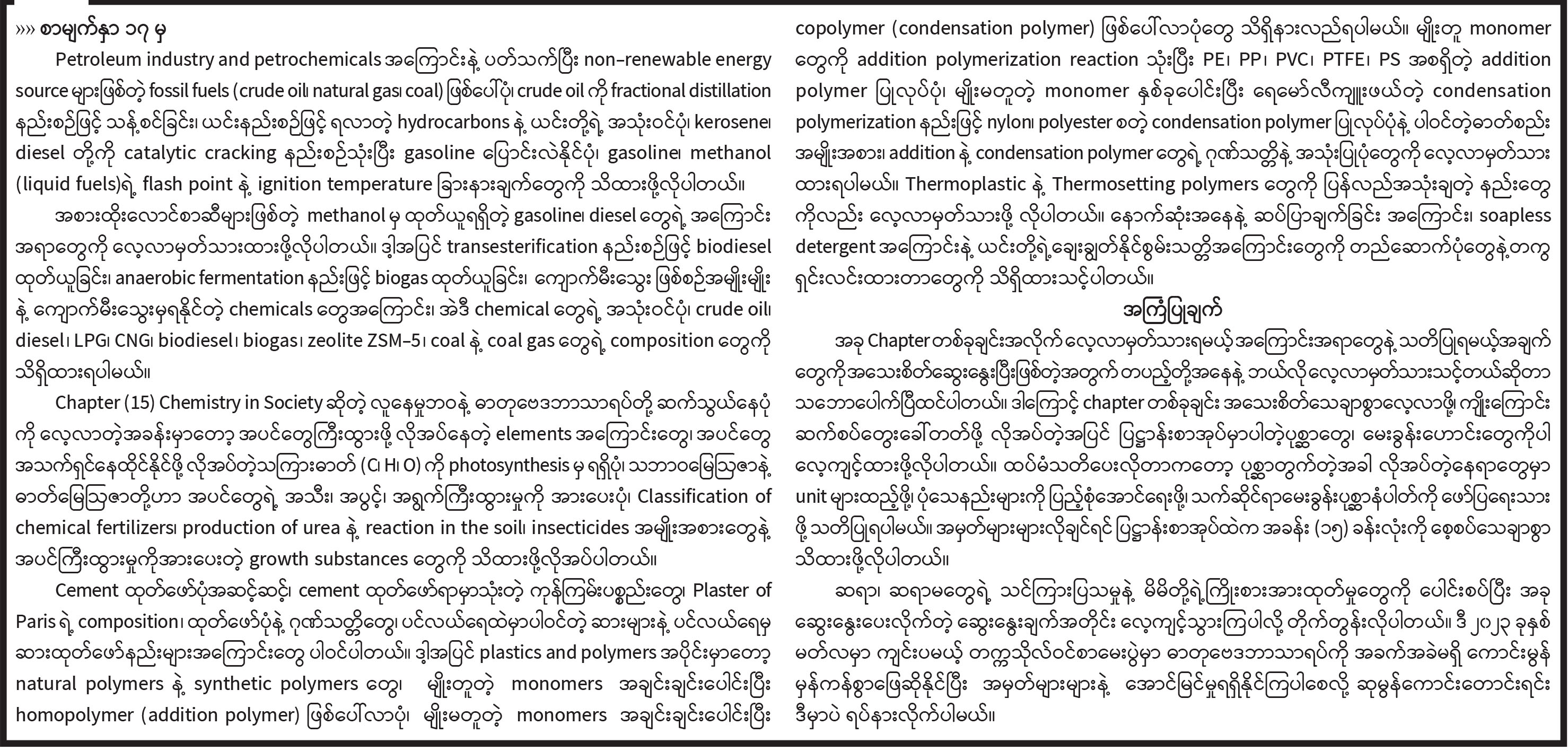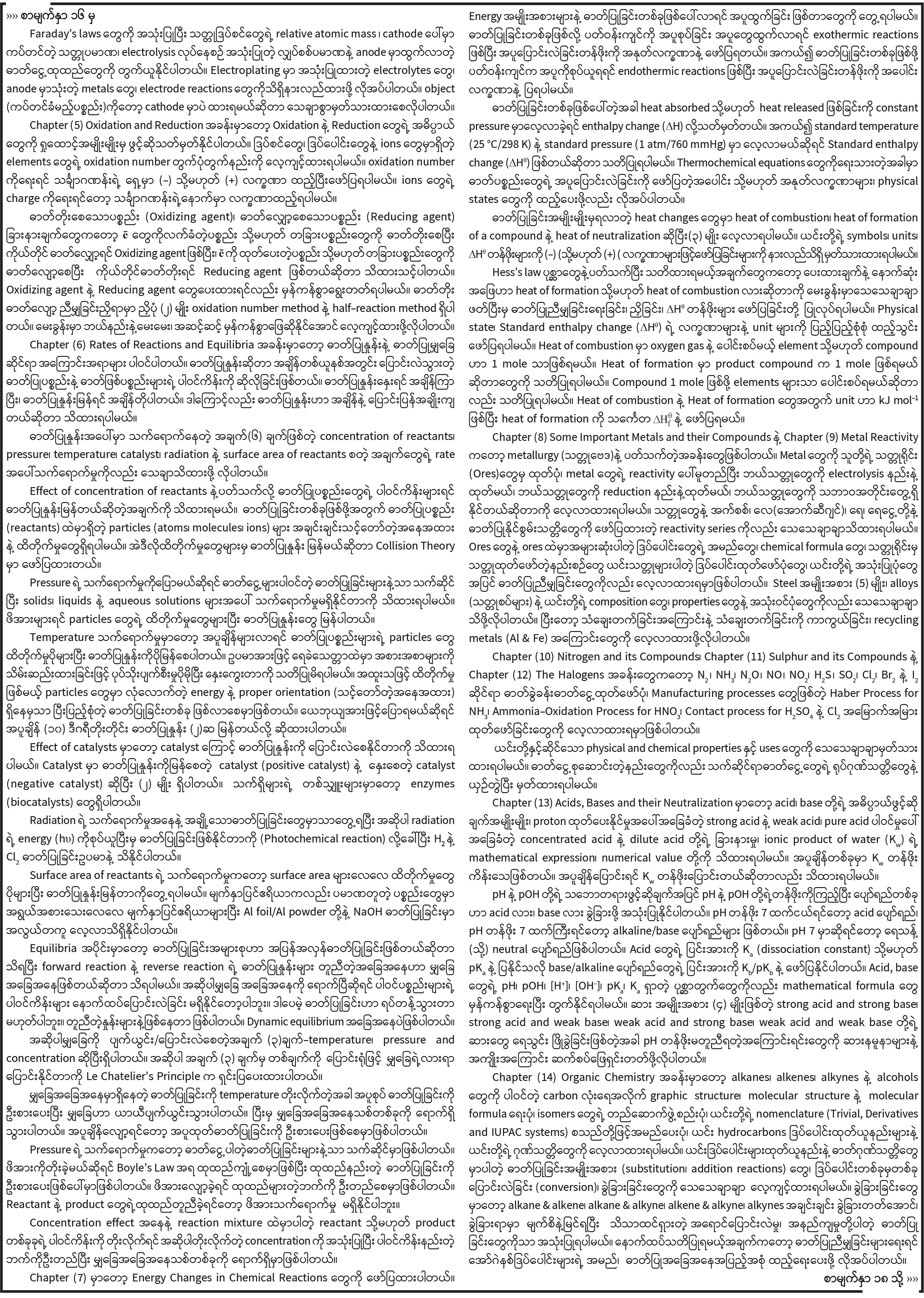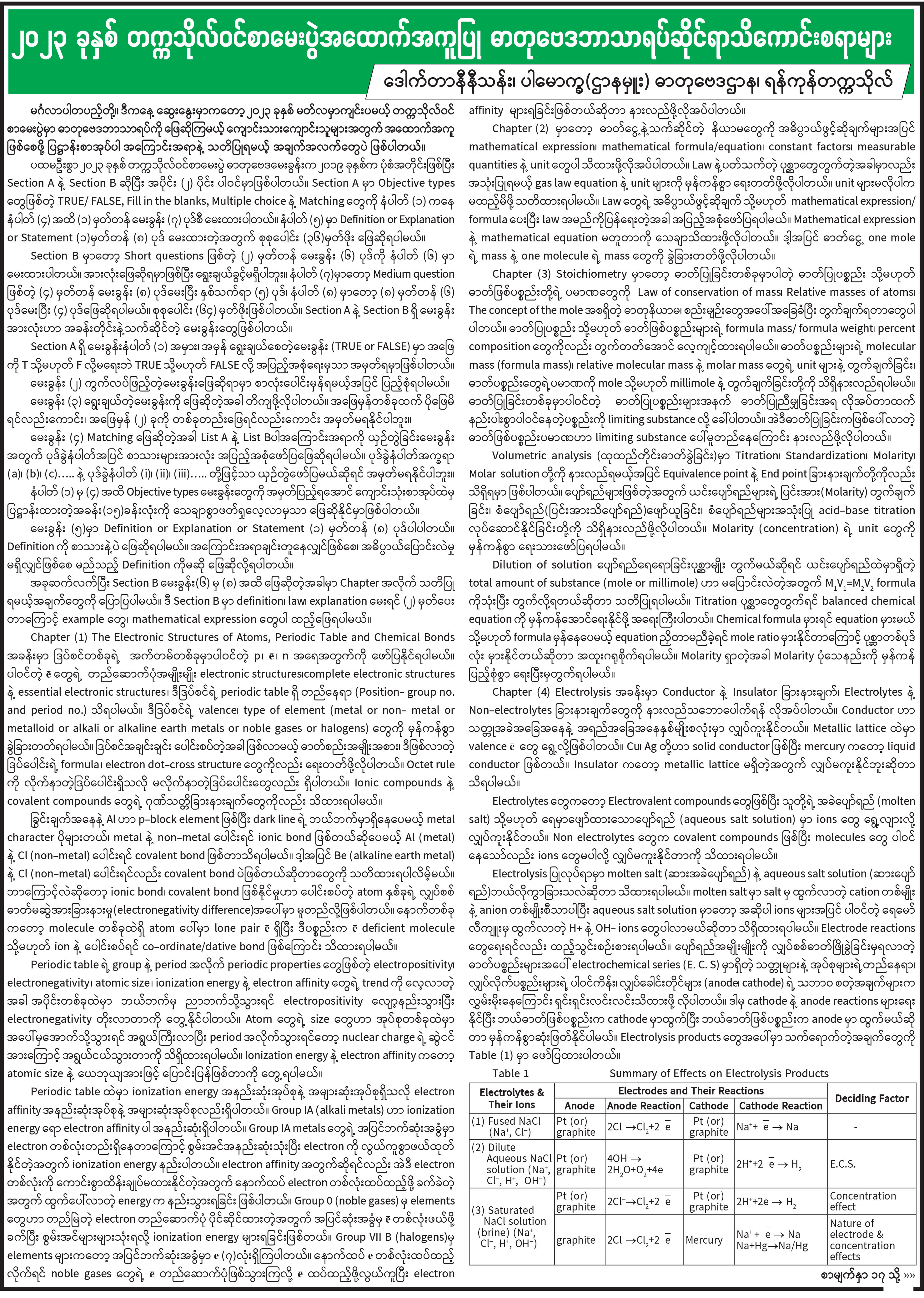 ၂၀၂၃ ခုနှစ် တက္ကသိုလ်ဝင်စာမေးပွဲအထောက်အကူပြု ဓာတုဗေဒဘာသာရပ်ဆိုင်ရာသိကောင်းစရာများ