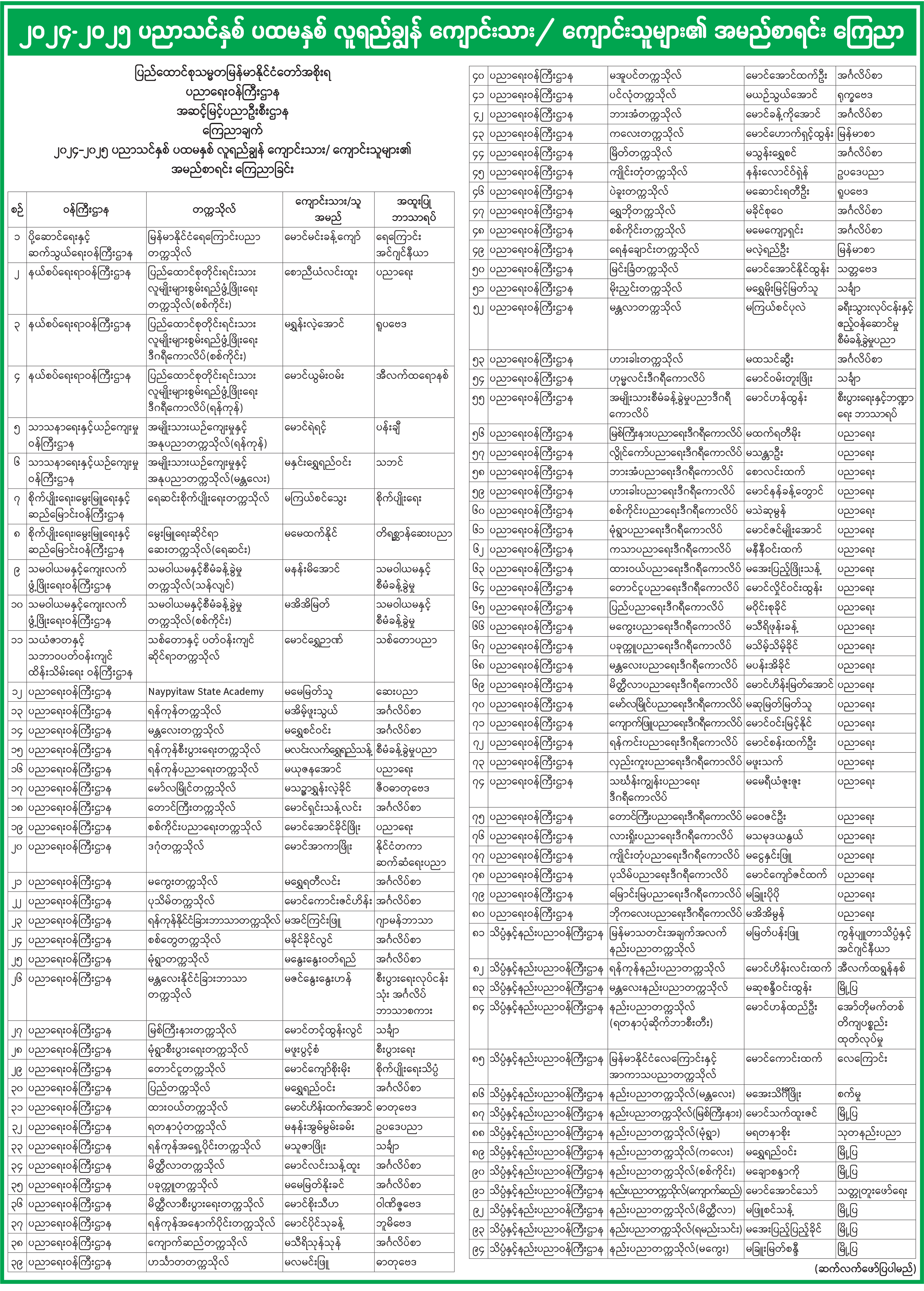 ၂၀၂၄-၂၀၂၅ ပညာသင်နှစ် ပထမနှစ် လူရည်ချွန် ကျောင်းသား/ကျောင်းသူများ၏ အမည်စာရင်း ကြေညာ