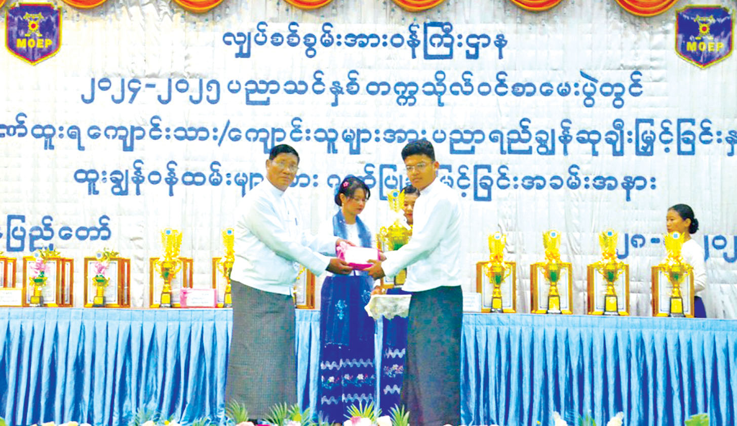 ထို့နောက် ပြည်ထောင်စုဝန်ကြီးနှင့် ဇနီးနှင့် တာဝန်ရှိသူများက ၂၀၂၄-၂၀၂၅ ပညာသင်နှစ် တက္ကသိုလ်ဝင်စာမေးပွဲတွင် ခြောက်ဘာသာဂုဏ်ထူး၊ ငါးဘာသာဂုဏ်ထူး၊ လေးဘာသာဂုဏ်ထူးဖြင့် ထူးချွန်စွာအောင်မြင်ခဲ့သူများနှင့် ထူးချွန်ဆုရ ဝန်ထမ်းများကို ဂုဏ်ပြုငွေ၊ ဂုဏ်ပြုမှတ်တမ်းလွှာနှင့် ဂုဏ်ပြုတံဆိပ်များ ပေးအပ်ချီးမြှင့်ကြပြီး ဂုဏ်ထူးရ ကျောင်းသား ကျောင်းသူများကိုယ်စား ခြောက်ဘာသာ ဂုဏ်ထူးရှင်တစ်ဦးက ကျေးဇူးတင်စကား ပြန်လည် ပြောကြားသည်။