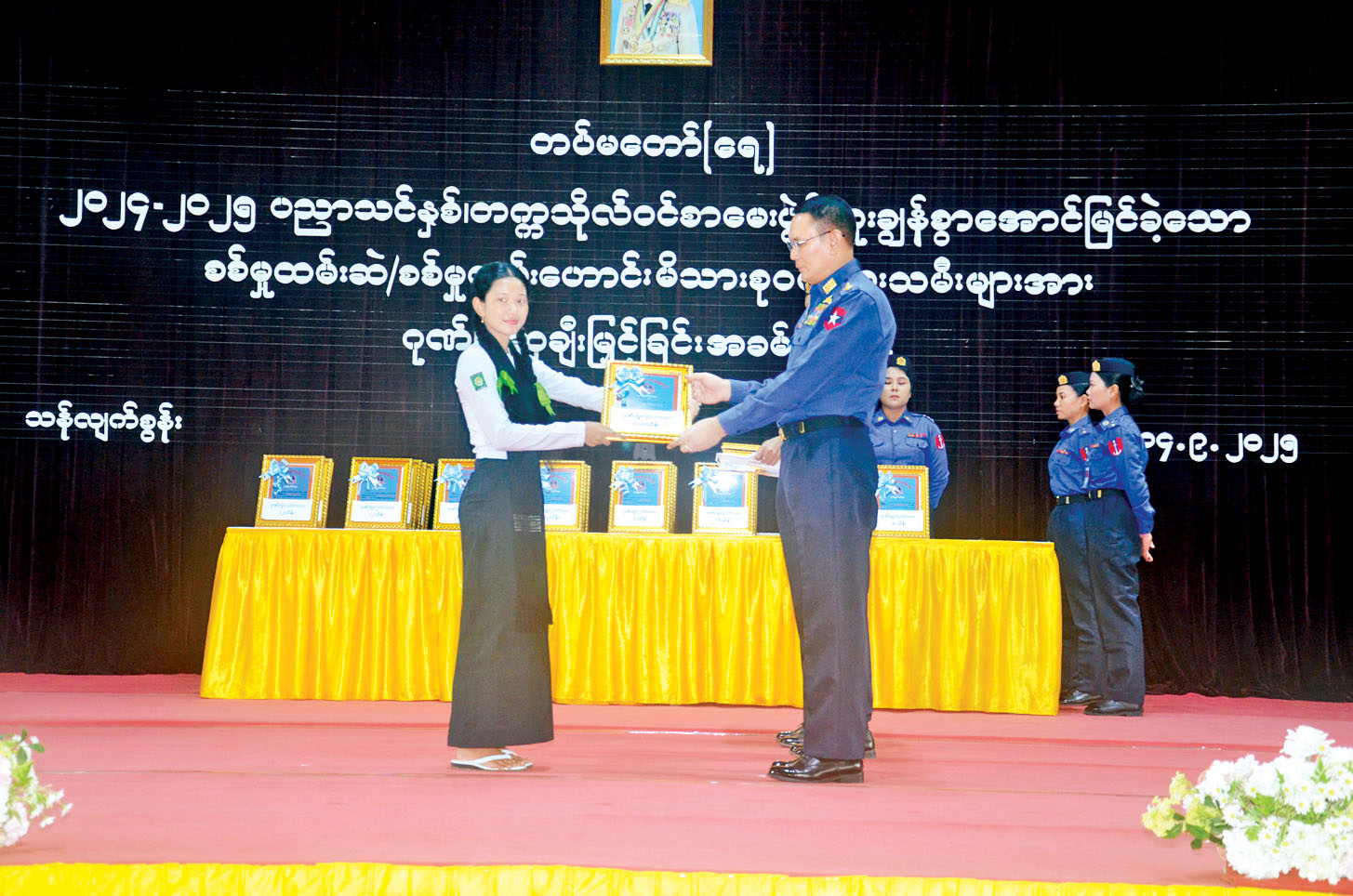 ၂၀၂၄-၂၀၂၅ ပညာသင်နှစ် တက္ကသိုလ်ဝင်စာမေးပွဲ၌ ထူးချွန်စွာအောင်မြင်ခဲ့ကြသည့် တပ်မတော်(ရေ)မှ စစ်မှုထမ်းဆဲနှင့် စစ်မှုထမ်းဟောင်းမိသားစုဝင် သားသမီးများအား ဂုဏ်ပြုဆုချီးမြှင့်ခြင်းကို ယနေ့နံနက်ပိုင်းတွင် ဧရာဝတီရေတပ်စခန်းဌာနချုပ်၌ ကျင်းပပြုလုပ်ရာ ကာကွယ်ရေးဦးစီးချုပ်(ရေ)ဗိုလ်ချုပ်ကြီးထိန်ဝင်းနှင့် အရာရှိ၊ စစ်သည်၊ မိသားစုများ၊ စစ်မှုထမ်းဟောင်းမိသားစုဝင်များ၊ တက္ကသိုလ်ဝင်စာမေးပွဲ၌ အောင်မြင်ခဲ့ကြသည့် ကျောင်းသား ကျောင်းသူများ၊ ကျောင်းသားမိဘများနှင့် ဖိတ်ကြားထားသူများ တက်ရောက်ကြသည်။