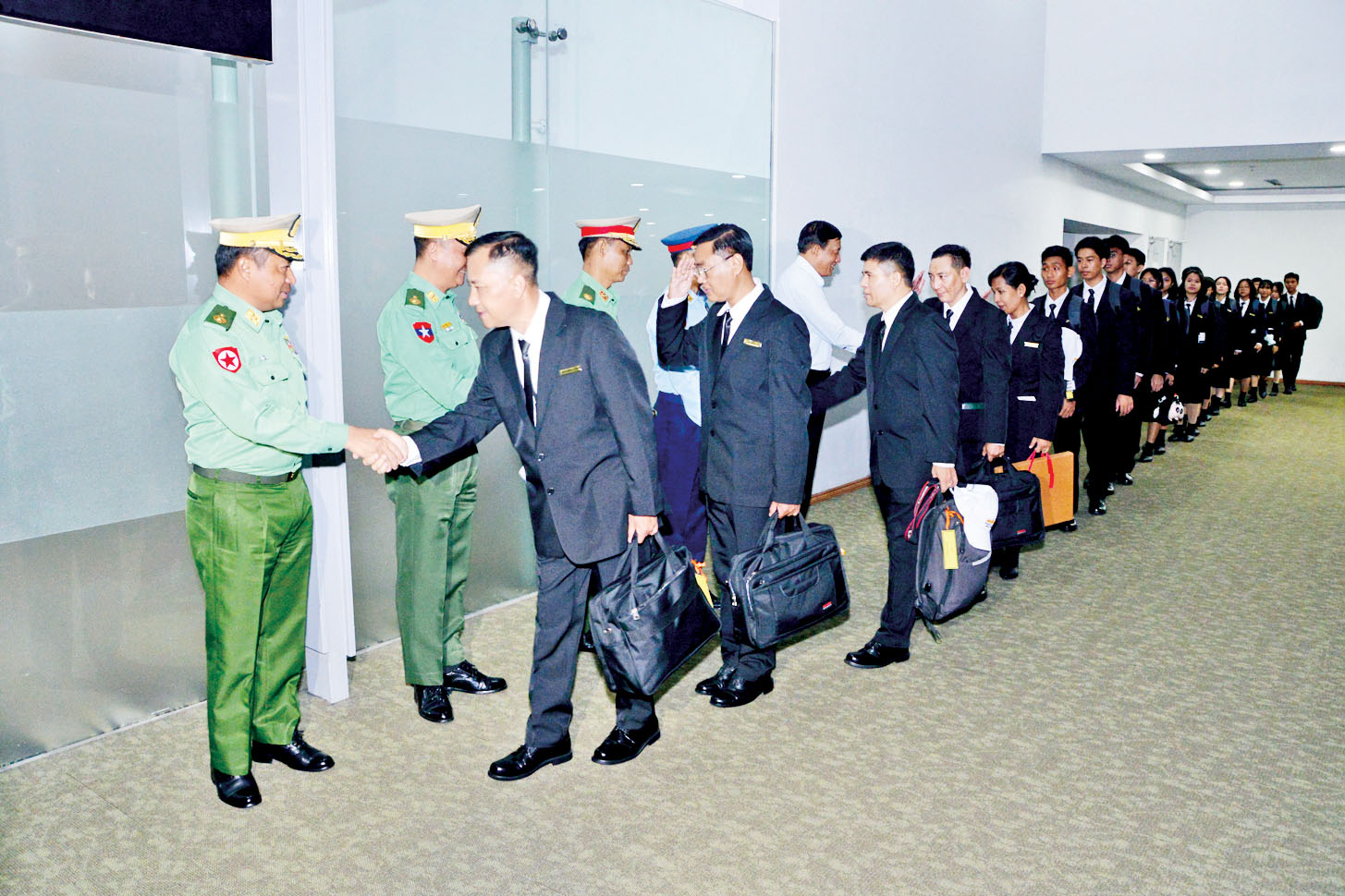 နိုင်ငံတော်လုံခြုံရေးနှင့် အေးချမ်းသာယာရေးကော်မရှင် ဥက္ကဋ္ဌ တပ်မတော်ကာကွယ်ရေး ဦးစီးချုပ်၏ လမ်းညွှန်မှုဖြင့် ၂၀၂၄-၂၀၂၅ ပညာသင်နှစ် တက္ကသိုလ်ဝင် စာမေးပွဲတွင် ထူးချွန်စွာအောင်မြင်ခဲ့ကြသည့် စစ်မှုထမ်းဆဲ/ စစ်မှုထမ်းဟောင်းနှင့် အစားခန့်ဝန်ထမ်းများ၏ သား/သမီး ကျောင်းသား ကျောင်းသူများနှင့် ဂုဏ်ထူးဖြင့်အောင်မြင်ခဲ့သော စစ်သည်များ ပါဝင်သည့် မျိုးဆက်သစ် ထူးချွန်လူငယ် မောင်မယ်များသည် နိုင်ငံတကာ ယဉ်ကျေးမှု၊ ဗဟုသုတနှင့် အသိပညာများ အတုယူ လေ့လာနိုင်စေရန်အတွက် တရုတ်ပြည်သူ့ သမ္မတနိုင်ငံသို့ လေ့လာရေး ခရီးစဉ် သွားရောက်ကြမည်ဖြစ်ရာ အဆိုပါ လေ့လာရေးအဖွဲ့သည် ယနေ့ညပိုင်းတွင် ရန်ကုန် အပြည်ပြည်ဆိုင်ရာ လေဆိပ်မှ လေကြောင်းခရီးဖြင့် ထွက်ခွာကြသည်။