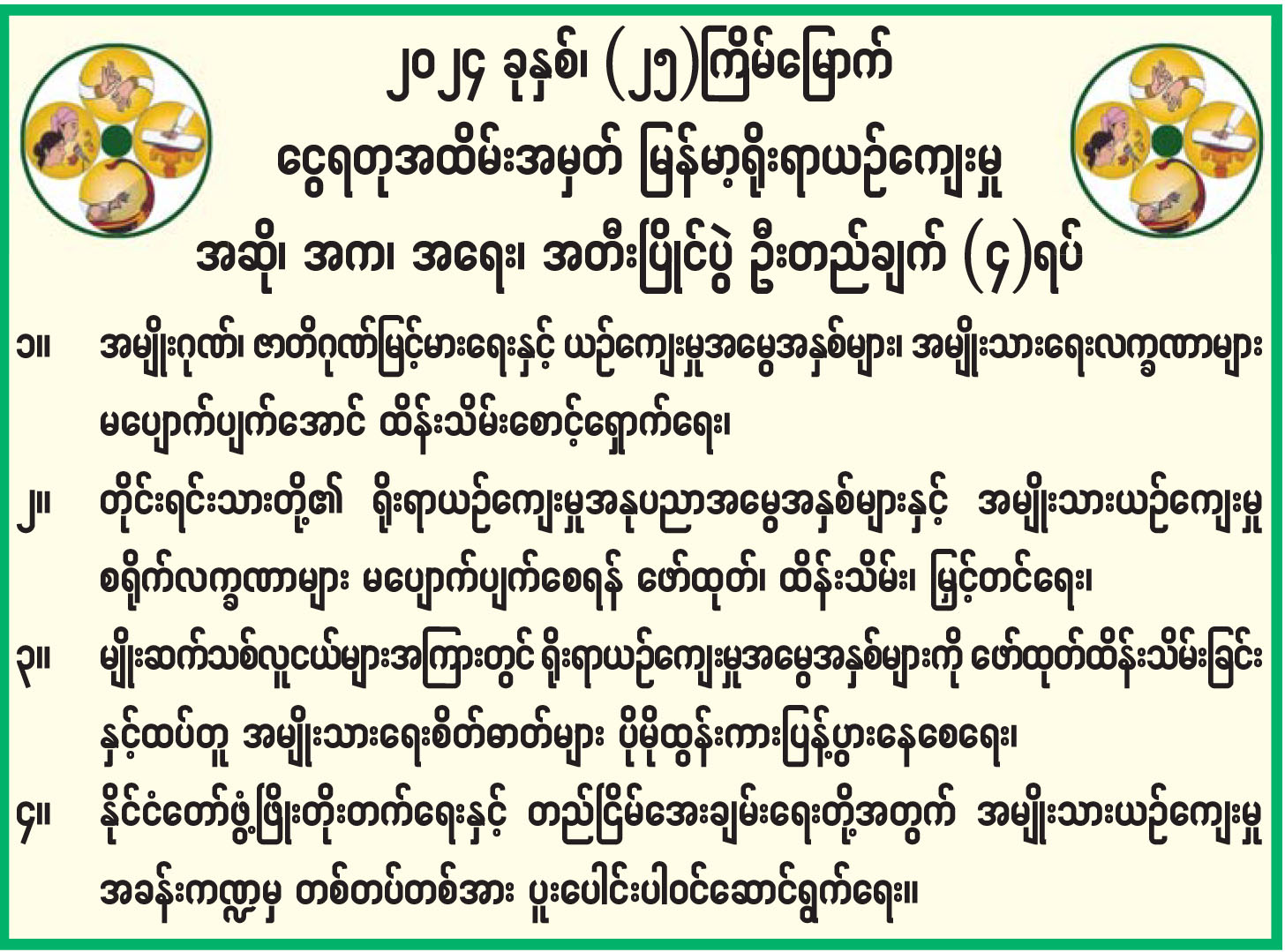 ၂၀၂၄ ခုနှစ်၊ (၂၅) ကြိမ်မြောက် ငွေရတုအထိမ်းအမှတ် မြန်မာ့ရိုးရာယဉ်ကျေးမှု အဆို၊ အက၊ အရေး၊ အတီးပြိုင်ပွဲ ဦးတည်ချက် (၄) ရပ်