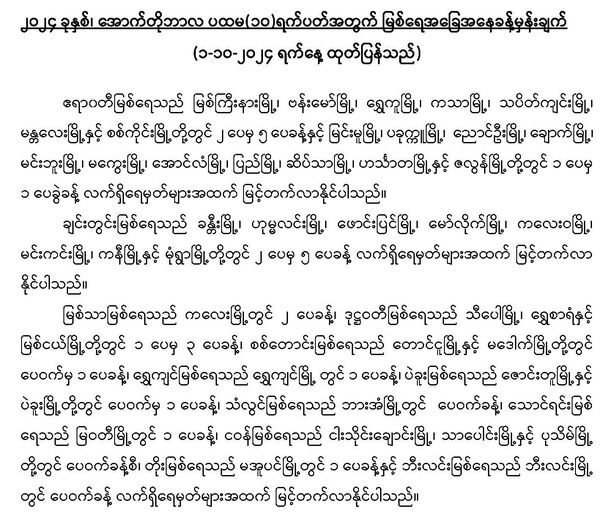 မိုးလေဝသနှင့်ဇလဗေဒညွှန်ကြားမှုဦးစီးဌာနမှ ၂၀၂၄ ခုနှစ်၊ အောက်တိုဘာလ ပထမ(၁၀)ရက်ပတ်အတွက် မြစ်ရေအခြေအနေခန့်မှန်းချက်ကို ၁-၁၀-၂၀၂၄ ရက်နေ့တွင် ထုတ်ပြန်ထားပါတယ်…