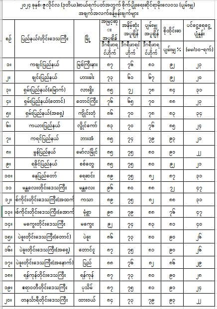 မိုးရွာသွန်းမှုအခြေအနေမှာ- နေပြည်တော်၊ မန္တလေးတိုင်းဒေသကြီး၊ မကွေးတိုင်းဒေသကြီး၊ ပဲခူးတိုင်းဒေသကြီး၊ ရန်ကုန်တိုင်းဒေသကြီး၊ ဧရာဝတီတိုင်းဒေသကြီး၊ တနင်္သာရီတိုင်းဒေသကြီး၊ ရှမ်းပြည်နယ်၊ ရခိုင်ပြည်နယ်၊ ကယားပြည်နယ်၊ ကရင်ပြည်နယ်နှင့် မွန်ပြည်နယ်တို့တွင် ရွာသွန်းမြဲထက်ပိုနိုင်ပြီး၊ စစ်ကိုင်းတိုင်းဒေသကြီး၊ ကချင်ပြည်နယ်နှင့် ချင်းပြည်နယ်တို့တွင် ရွာသွန်းမြဲခန့် မိုးထစ်ချုန်းရွာနိုင်ပါသည်။