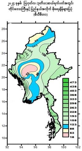 (ဖြစ်နိုင်စွမ်းပင်ငွေ့ရေငွေ့ပျံနှုန်းအား HARGREAVES METHOD ဖြင့် တွက်ချက်ထားပါသည်။)