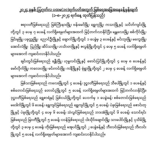 မိုးလေဝသနှင့်ဇလဗေဒညွှန်ကြားမှုဦးစီးဌာနမှ ၂၀၂၄ ခုနှစ်၊ ဩဂုတ်လ ပထမ(၁၀)ရက်ပတ်အတွက် မြစ်ရေအခြေအနေခန့်မှန်းချက်ကို ၁-၈-၂၀၂၄ ရက်နေ့တွင် ထုတ်ပြန်ထားပါတယ်---