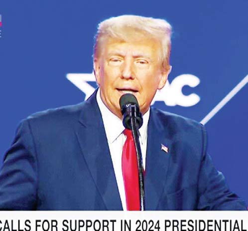 ဝါရှင်တန်မြို့အနီး၌ ကျင်းပသည့် ကွန်ဆာဗေးတစ်နိုင်ငံရေး လှုပ်ရှားမှုညီလာခံ၏ နောက်ဆုံးနေ့တွင် သမ္မတဟောင်းထရမ့်က မိန့်ခွန်းပြောကြားခြင်းဖြစ်သည်။ ၎င်းက  အမေရိကန်သမ္မတ ဂျိုးဘိုင်ဒင်၏ စီးပွားရေးမူဝါဒများကို ဝေဖန်ခဲ့ပြီး ကျွန်ုပ်တို့စတင်ခဲ့သည်ကို ပြီးအောင်လုပ်ရန်နှင့် အမေရိကန်ကို တစ်ဖန်ပြန်ကောင်းအောင်လုပ်ရန် ၎င်းက ကတိပြုပြောကြားသည်။