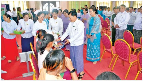အခမ်းအနားအပြီးတွင် အာဟာရဖွံ့ဖြိုးရေး ရက်သတ္တပတ်နှင့် ကျောင်းကျန်းမာရေး သီတင်းပတ် လှုပ်ရှားမှု မှတ်တမ်းဓာတ်ပုံများနှင့် အစာအုပ်စုအလိုက် ခွဲခြားပြသထားမှုများကို လှည့်လည်ကြည့်ရှု အားပေးကြသည်။