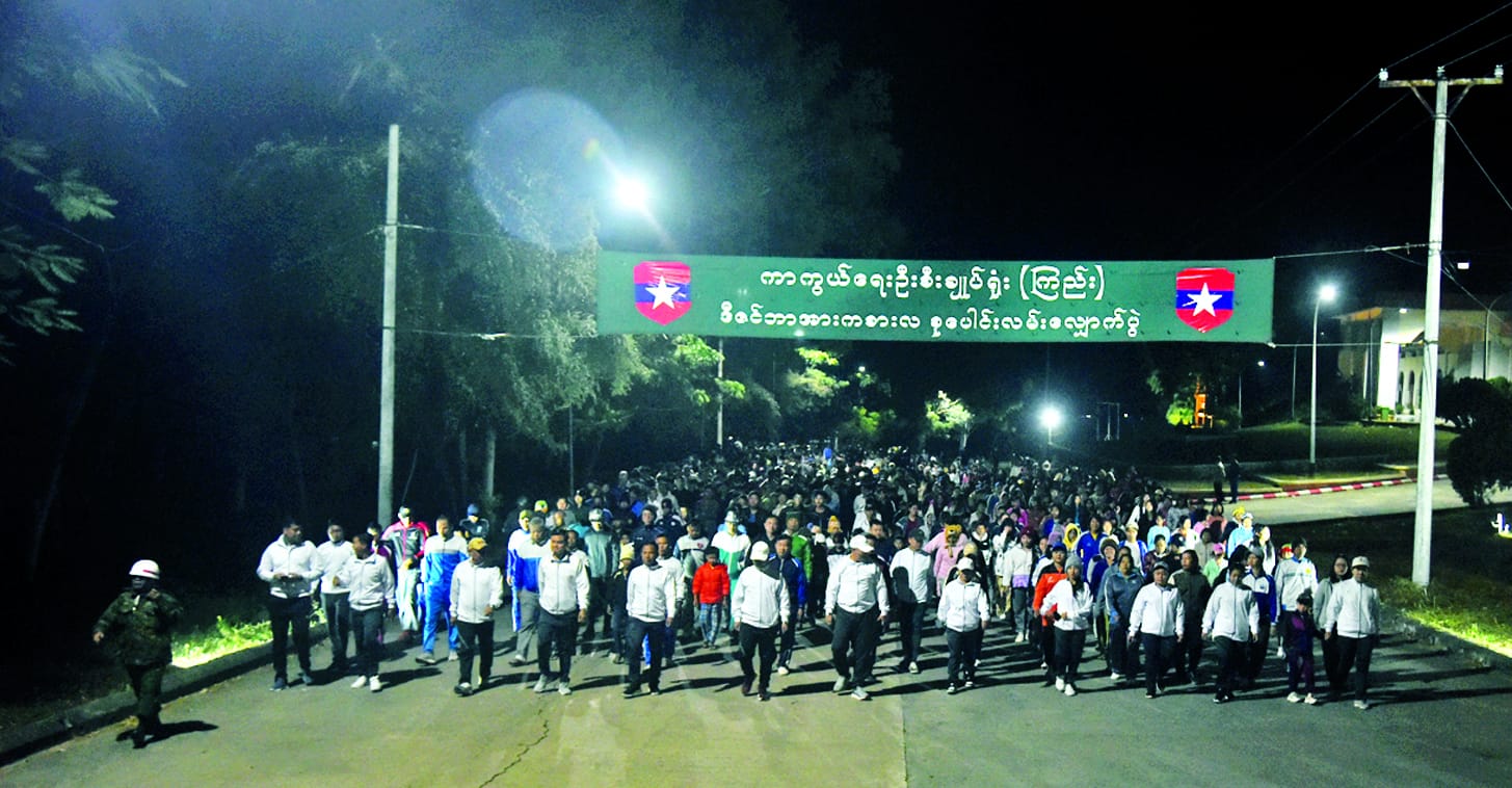 အလားတူ   ကာကွယ်ရေးဦးစီးချုပ်ရုံး(ကြည်း) ရုံး/ဌာနများ၏   ဒီဇင်ဘာအားကစားလ   စုပေါင်းလမ်းလျှောက်ပွဲကို ယနေ့နံနက်ပိုင်းတွင် ကျင်းပရာ ကာကွယ်ရေးဦးစီးချုပ်ရုံး(ကြည်း)၊ စခန်းမှူးရုံး စခန်းမှူးနှင့် ရုံး/ဌာနများမှ အရာရှိ၊ စစ်သည်၊ မိသားစုများ ပါဝင်ဆင်နွှဲ၍  သတ်မှတ်လမ်းကြောင်းများအတိုင်း စုပေါင်းလမ်းလျှောက်ကြပြီး သတ်မှတ်နေရာ၌ ကိုယ်လက်ကြံ့ခိုင်ရေးများ စုပေါင်းဆောင်ရွက်ခဲ့ကြကြောင်း သိရသည်။