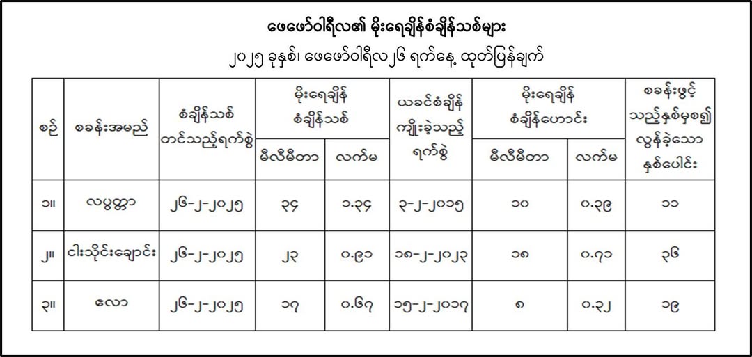 ၂၀၂၅ ခုနှစ်၊ ဖေဖော်ဝါရီလ၂၆ ရက်နေ့ ထုတ်ပြန်သည့် ဖေဖော်ဝါရီလ၏ မိုးရေချိန်စံချိန်သစ်များ