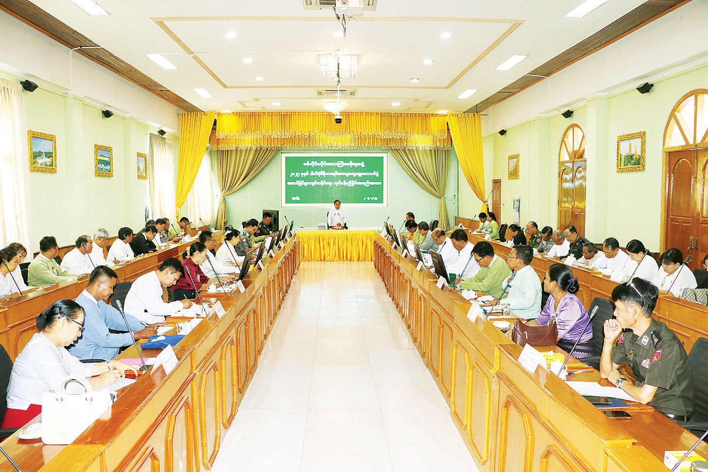 အစည်းအဝေးတွင် တိုင်းဒေသကြီးဝန်ကြီးချုပ်က အမှာစကားပြောကြားပြီး တိုင်းဒေသကြီး ရွေးကောက်ပွဲကော်မရှင်အဖွဲ့ခွဲ အတွင်းရေးမှူးနှင့် ဥက္ကဋ္ဌများက တိုင်းဒေသကြီးအတွင်းရှိ ခရိုင်၊ မြို့နယ်များအတွင်း ၂၀၂၅ ခုနှစ် ပါတီစုံဒီမိုကရေစီအထွေထွေရွေးကောက်ပွဲကျင်းပရေးဆိုင်ရာ အချက်အလက်များ၊ မဲဆန္ဒနယ်သတ်မှတ်ခြင်း၊ ကော်မရှင်အဖွဲ့ခွဲအဆင့်ဆင့် ဖွဲ့စည်းထားရှိမှုနှင့် MEVM စက်များ ဖြန့်ဖြူးပေးထားမှု အခြေအနေများကို လည်းကောင်း၊ နာဂကိုယ်ပိုင်အုပ်ချုပ်ခွင့်ရ ဒေသနှင့် တိုင်းဒေသကြီးအတွင်းရှိ ခရိုင်စီမံခန့်ခွဲရေးနှင့် အုပ်ချုပ်ရေးကော်မတီဥက္ကဋ္ဌများက ခရိုင်အလိုက် ၂၀၂၅ ခုနှစ် ပါတီစုံဒီမိုကရေစီအထွေထွေ ရွေးကောက်ပွဲအောင်မြင်စွာကျင်းပနိုင်ရေး ကြိုတင် ဆောင်ရွက်ထားရှိမှုများကို လည်းကောင်း ရှင်းလင်းတင်ပြကြရာ တိုင်းဒေသကြီးဝန်ကြီးချုပ်က လိုအပ်သည်များကို တာဝန်ရှိသူများနှင့် ပေါင်းစပ်ညှိနှိုင်း ဆောင်ရွက်ပေးသည်။
