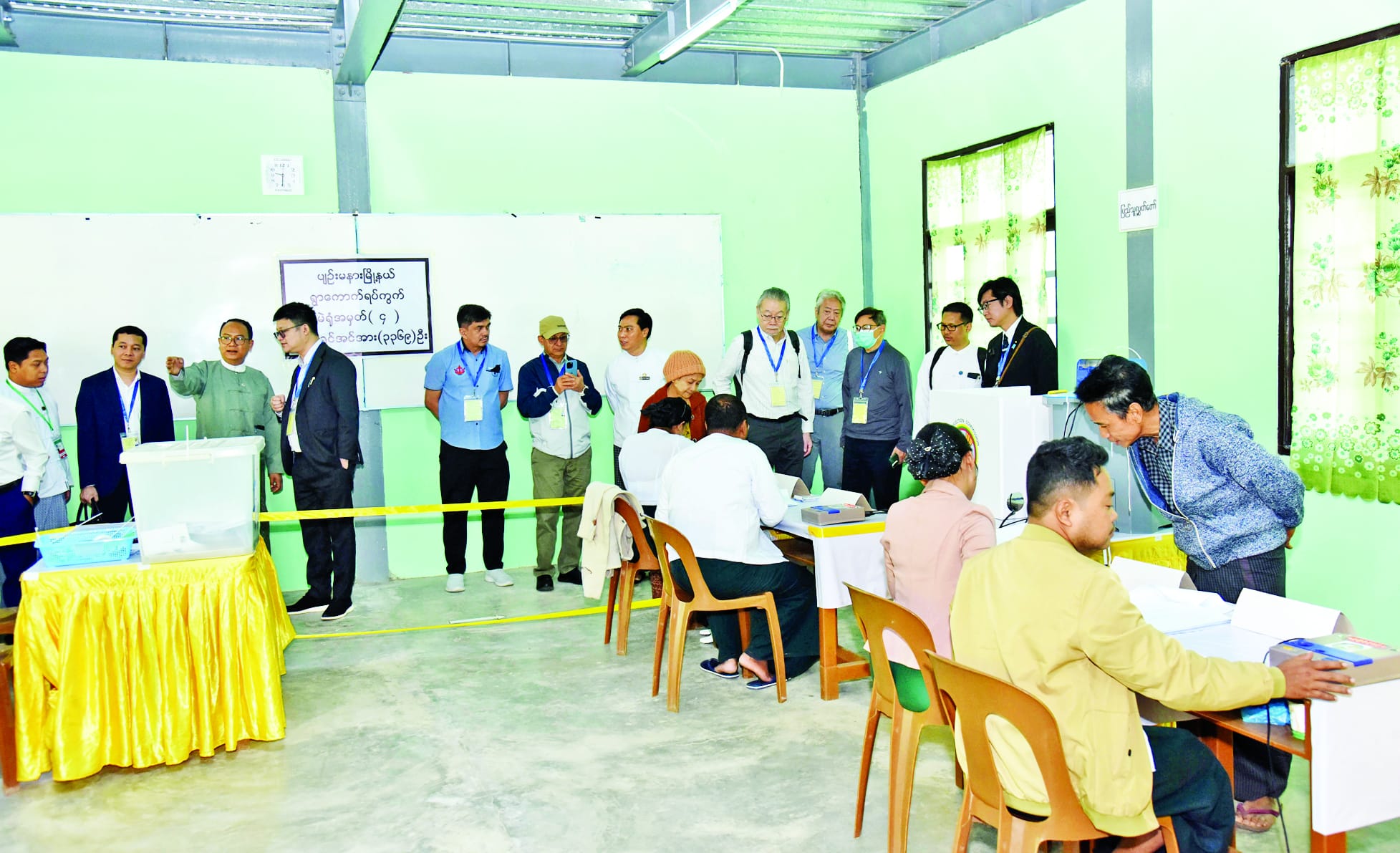 “အများယုံကြည်လက်ခံသည့် ရွေးကောက်ပွဲမှသည် ဒီမိုကရေစီနိုင်ငံတော်သစ်ဆီသို့” ဆောင်ပုဒ်နှင့်အညီ ပြည်ထောင်စုရွေးကောက်ပွဲကော်မရှင်၏ ၂၀၂၅ ခုနှစ် ပါတီစုံဒီမိုကရေစီ အထွေထွေရွေးကောက်ပွဲကျင်းပနေမှုကို နိုင်ငံတကာနှင့် ပြည်တွင်းအခြေစိုက် နိုင်ငံခြားသံရုံးများမှ ရွေးကောက်ပွဲစောင့်ကြည့်လေ့လာသူများက နေပြည်တော် ကောင်စီနယ်မြေရှိ မဲရုံများသို့သွားရောက်၍ မဲရုံမှူးများ၊ မဲဆန္ဒရှင်ပြည်သူများနှင့် တွေ့ဆုံကာ ရွေးကောက်ပွဲနှင့်ပတ်သက်ပြီး ဆွေးနွေးလေ့လာစောင့်ကြည့်မှုများ ပြုလုပ်ကြသည်။