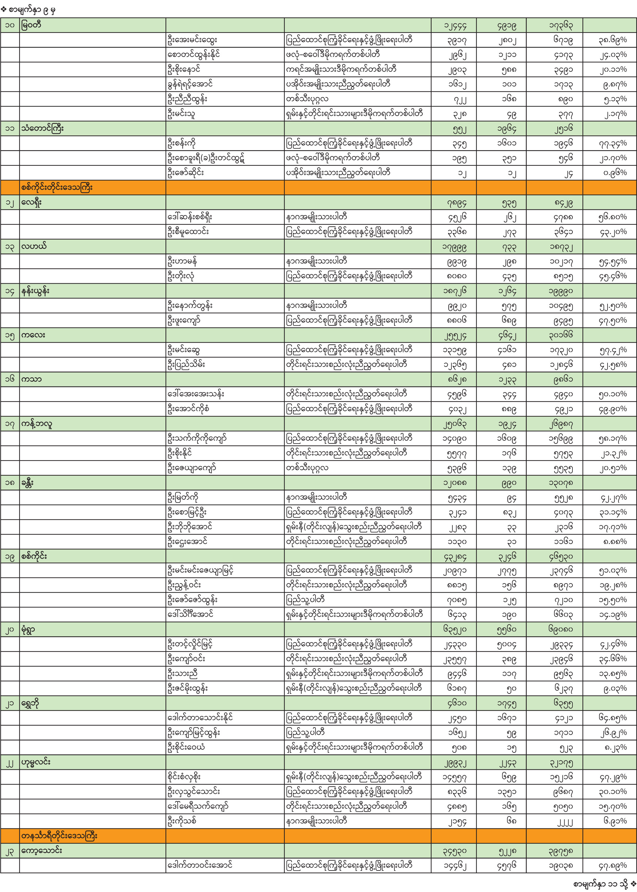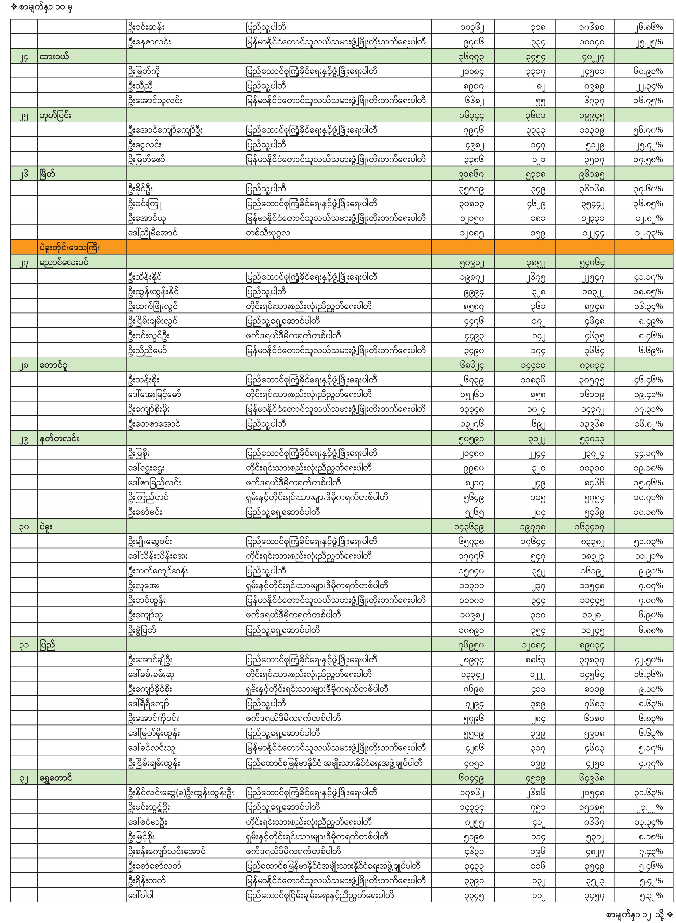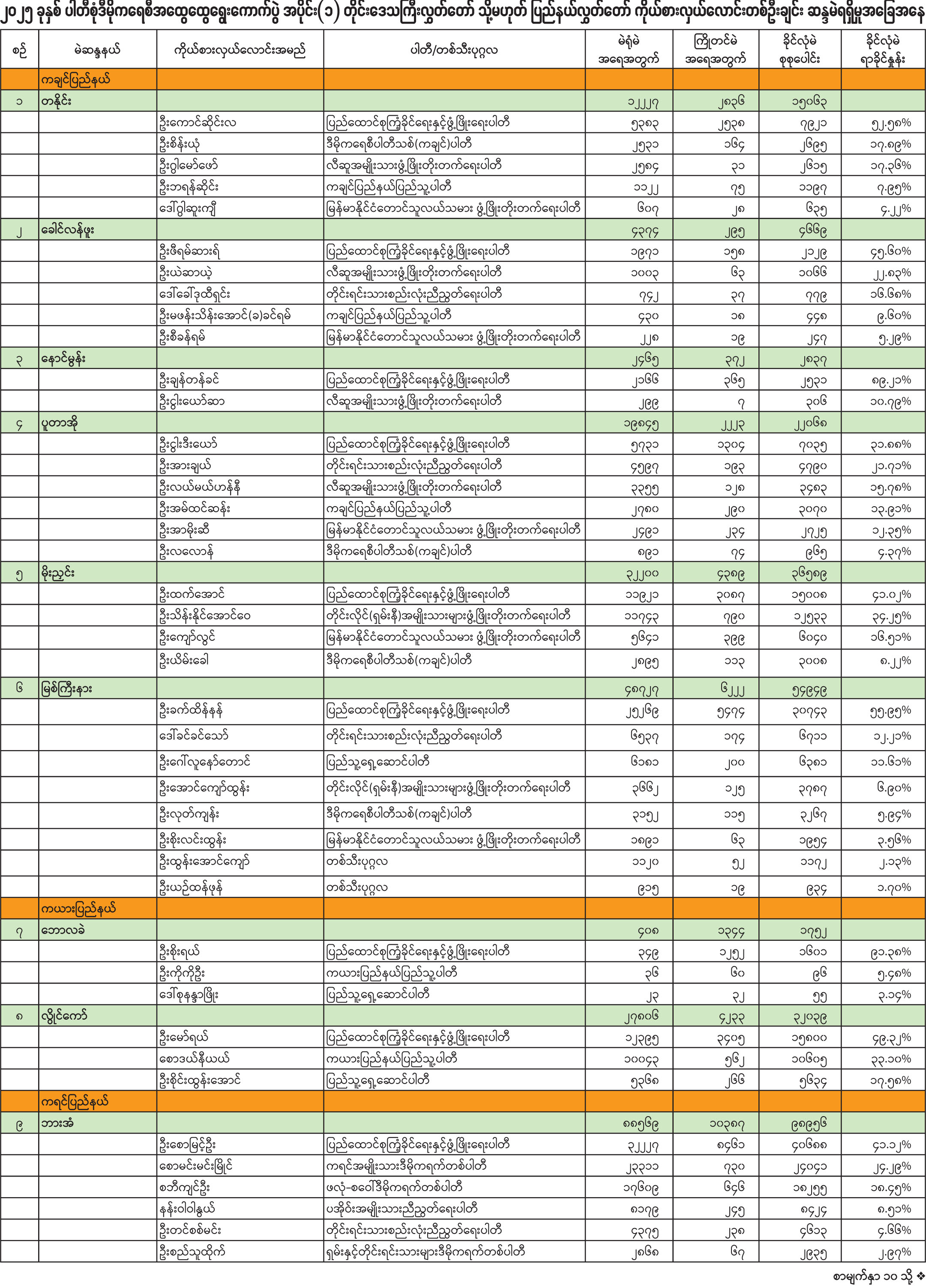 ၂၀၂၅ ခုနှစ် ပါတီစုံဒီမိုကရေစီအထွေထွေရွေးကောက်ပွဲ အပိုင်း(၁) တိုင်းဒေသကြီးလွှတ်တော် သို့မဟုတ် ပြည်နယ်လွှတ်တော် ကိုယ်စားလှယ်လောင်းတစ်ဦးချင်း ဆန္ဒမဲရရှိမှုအခြေအနေ