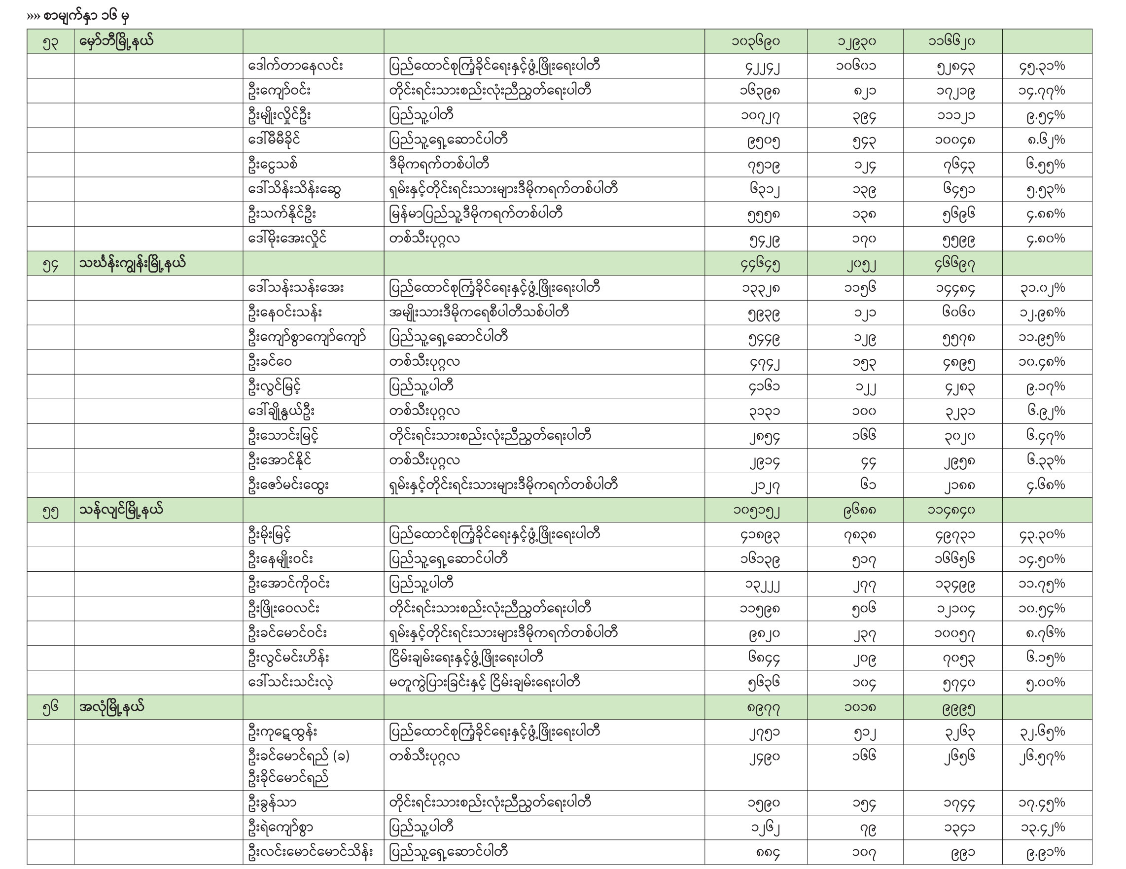 ၂၀၂၅ ခုနှစ် ပါတီစုံဒီမိုကရေစီအထွေထွေရွေးကောက်ပွဲအပိုင်း(၁) ပြည်သူ့လွှတ်တော်ကိုယ်စားလှယ်လောင်းတစ်ဦးချင်း ဆန္ဒမဲရရှိမှုအခြေအနေ